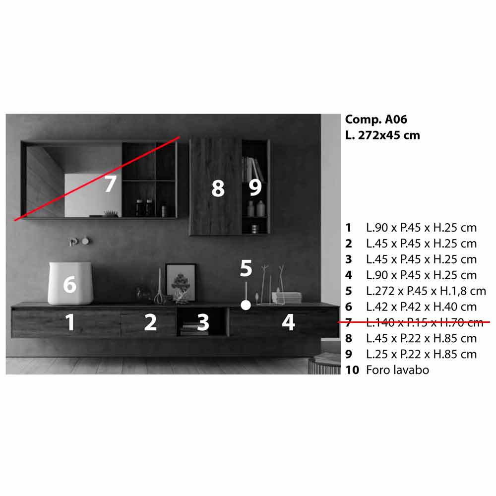 Composition of modern bathroom furniture, suspended and long-limbed design with countertop washbasin, made in Italy.
