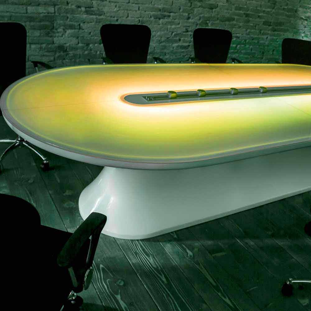 Modern design meeting table, which combines elegance and technology. With its sinuous shapes and generous spaces, Info Table is a true work of art.