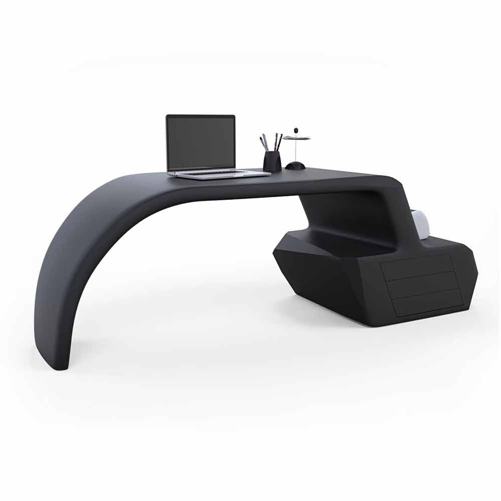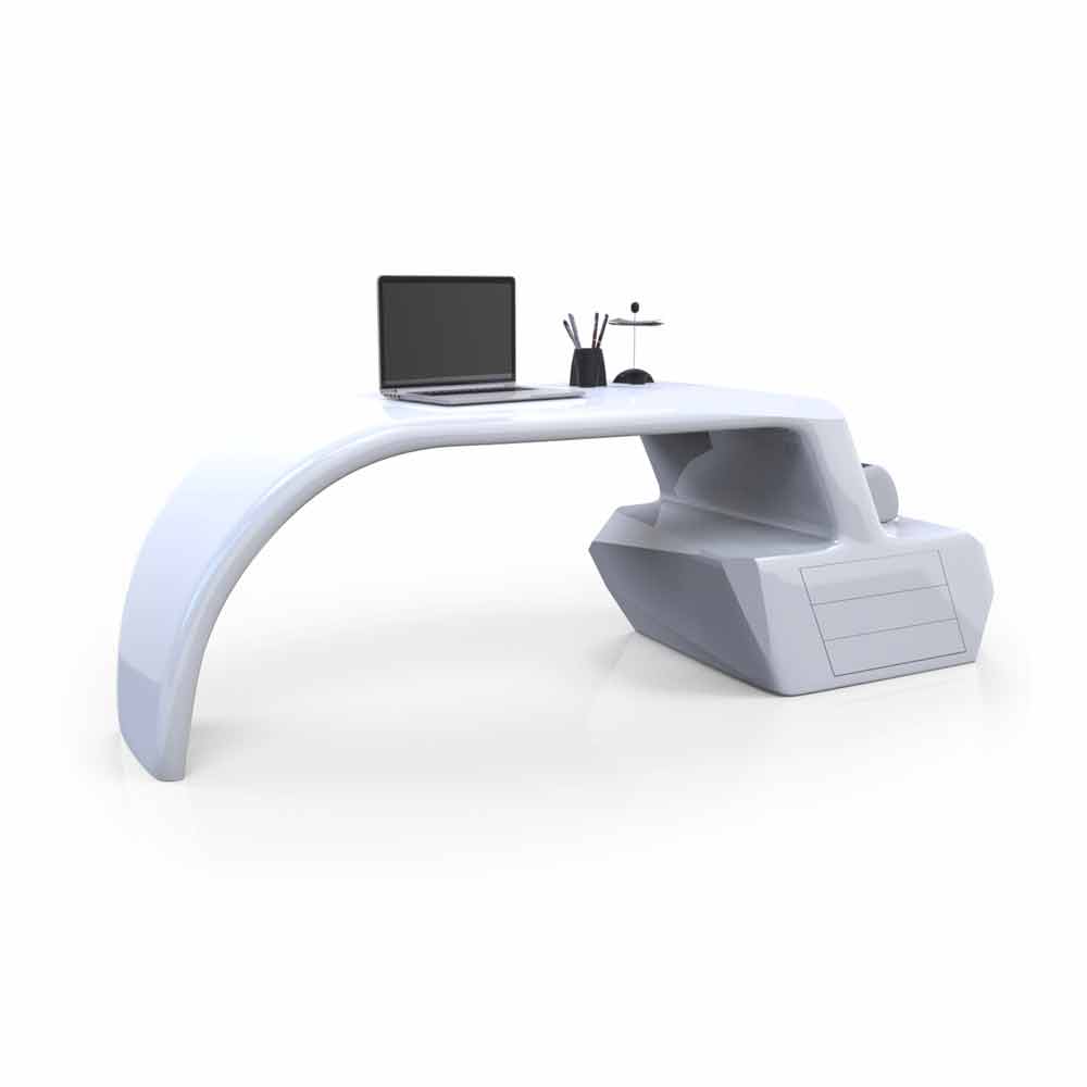 This modern desk puts divergent stylistic codes in dialogue: solid VS liquid to fully enhance the characteristics of Solid Surface;, the material of which it is made.