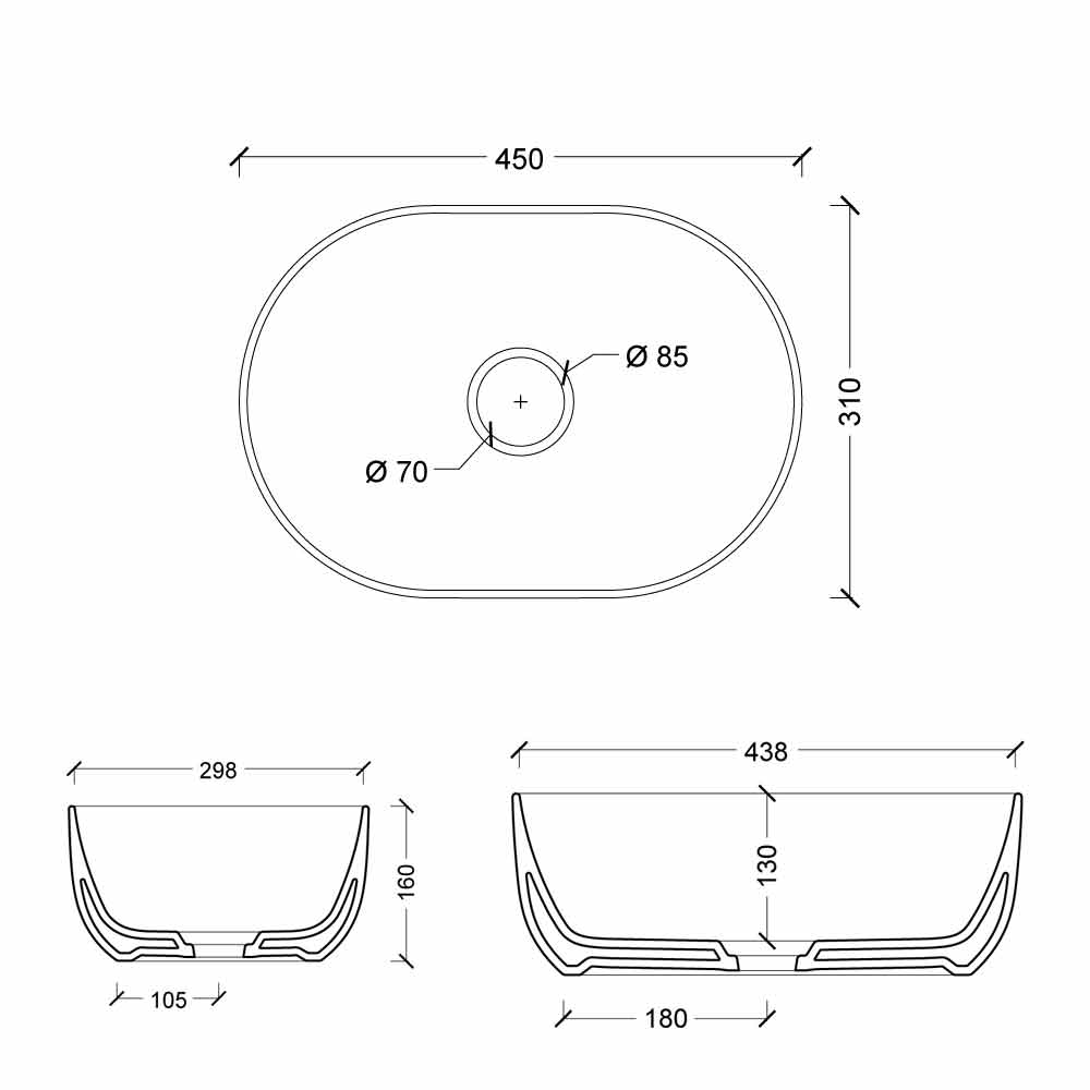 Maximum essentiality. Star is a collection characterized by a revolutionary design that combines perfect proportions and pure forms. An elegant collection with minimal lines and essential design. The Washbasins have thin thicknesses and can be installed on the support. Note: Free trap ceramic drain included, tap excluded.