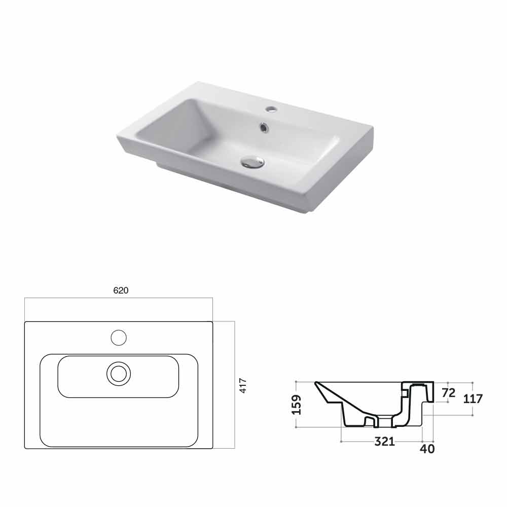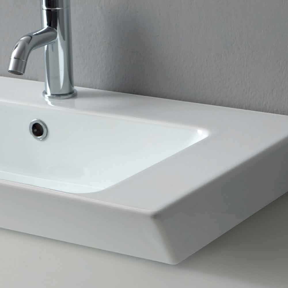 The countertop and wall insert sink is characterized by a modern and simple design, able to adapt to any kind of space and furniture. The decorative aspect is perfectly combined to the functionality which is an essential feature for the bathroom. The use of vitreous china, particular kind of glazed ceramic cooked at 1200°, allows to use this sink without fear of ruining the surface. It is a material resistant to acid, heat, bumps and scratches and it does not fade overtime. It is also hygenic and easy to clean.