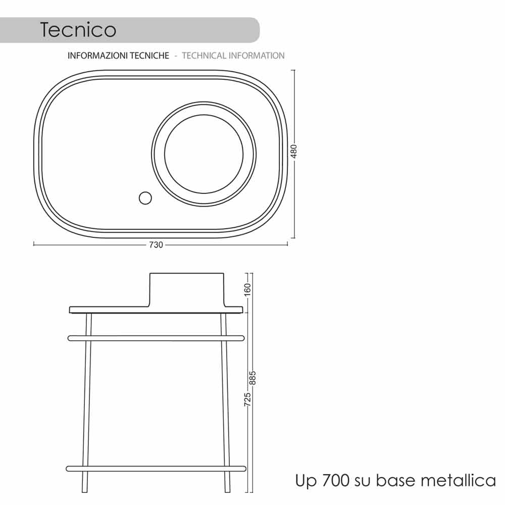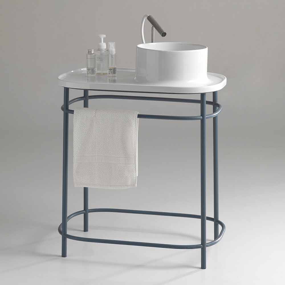 Countertop washbasin in ceramic complete with metal base Marta