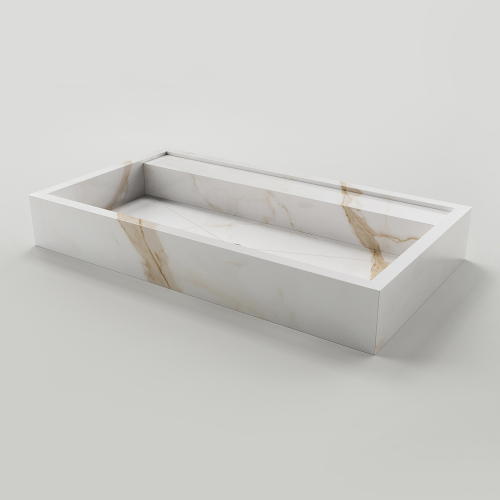 Countertop washbasin made through the use of latest generation marble-effectporcelain stoneware slabs worked with high quality production processes , Ā entirely Made in Italy . A product of timeless elegance punctuated by essential and versatile shapes capable of adapting to any furnishing situation, bringing with it personality and refinement. The wonderful finishes proposed underline even more the fine and tasteful aesthetics of the washbasin which is produced with great attention to detail in order to obtain an exclusive and high quality result.