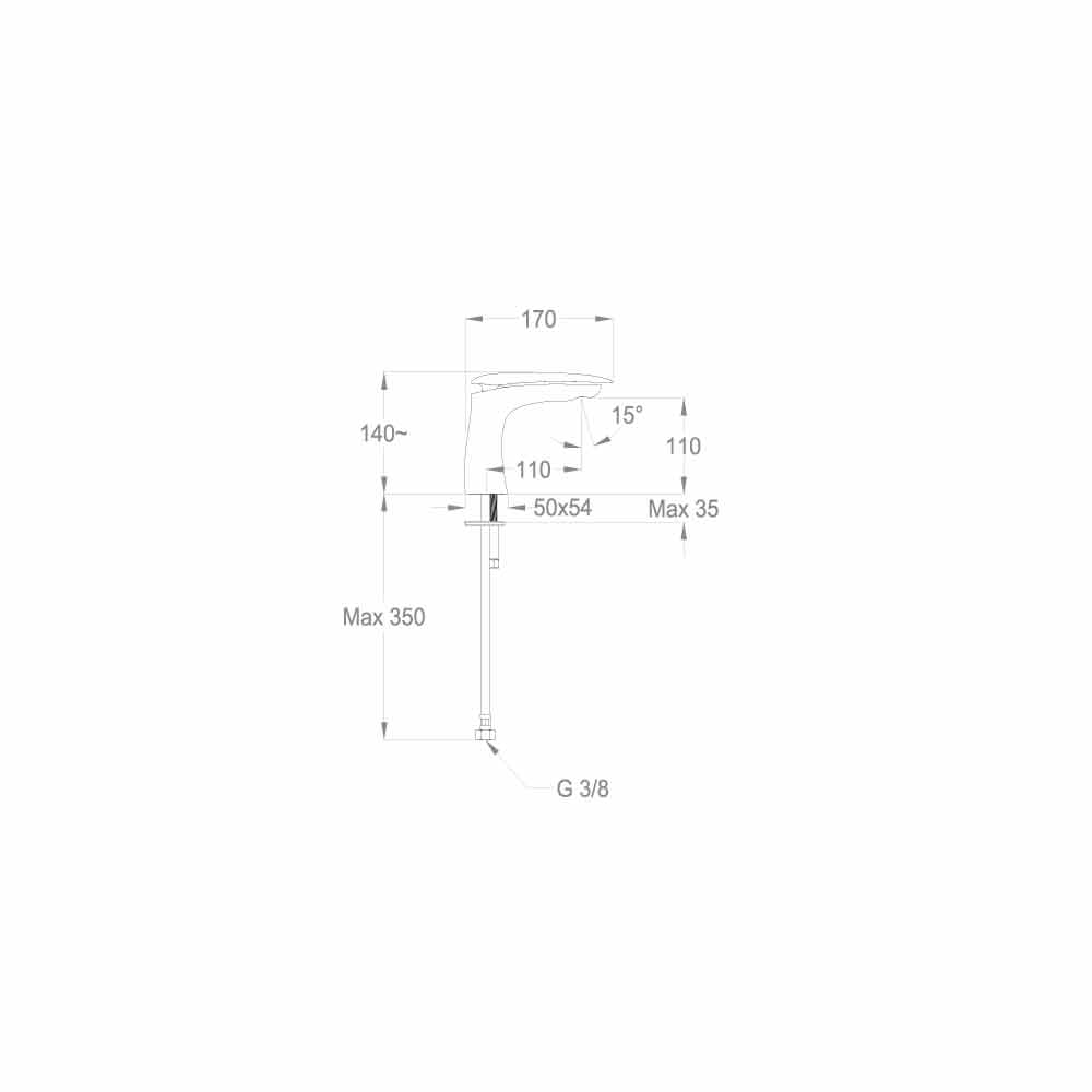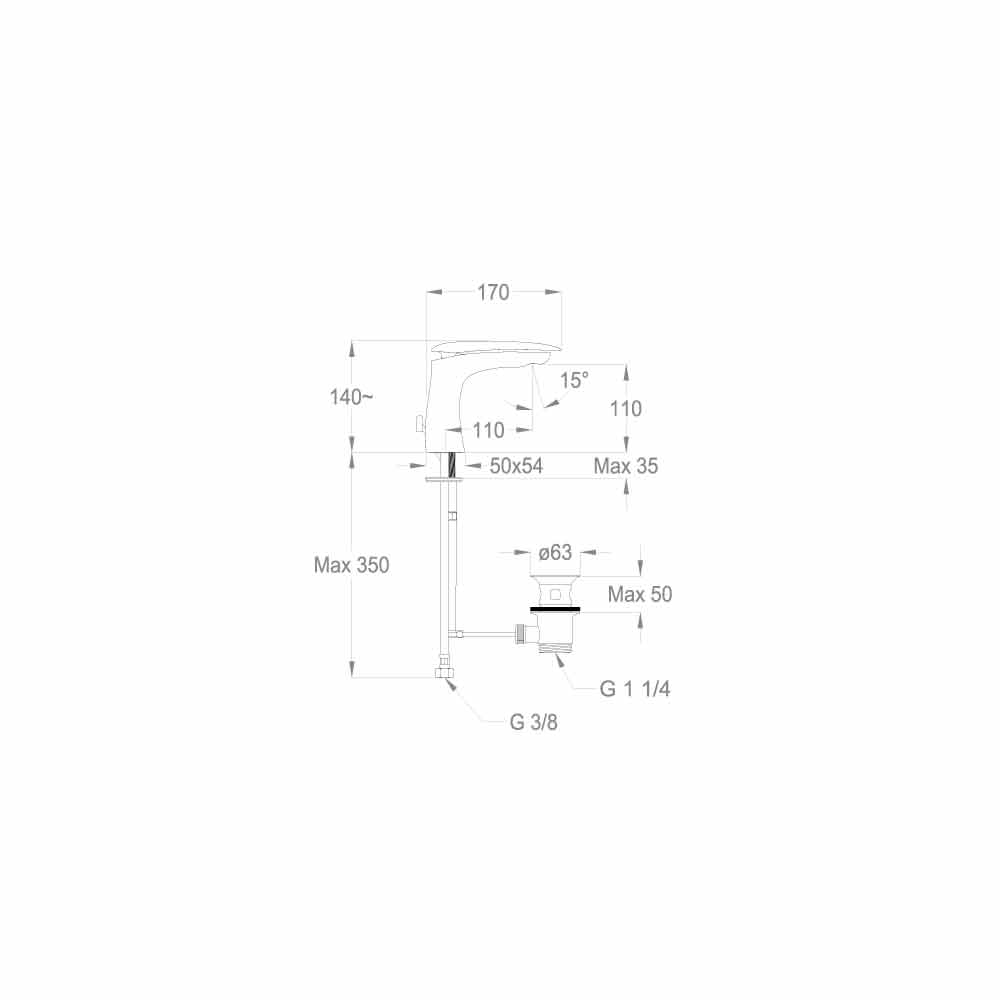 basin mixer 140mm high and with a center distance of 110mm entirely
