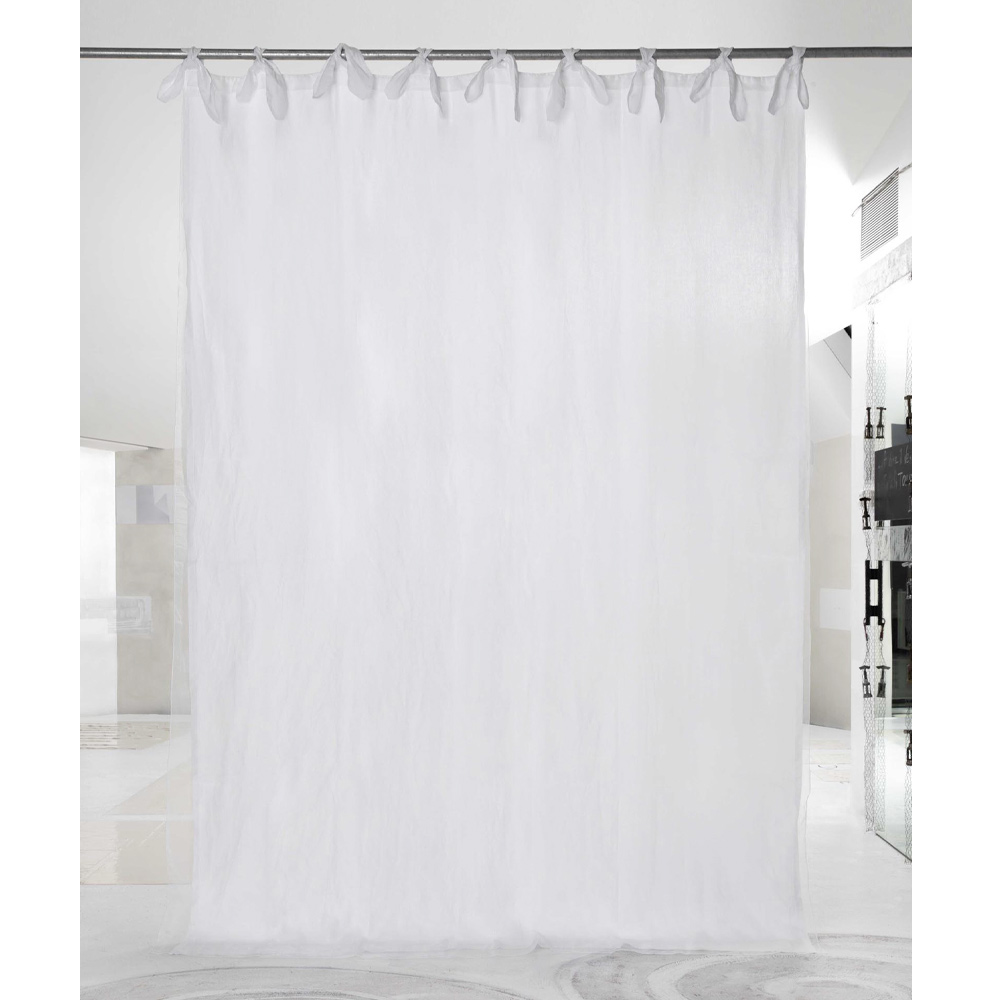 Curtain in light linen and organza, lacing with handcrafted quality laces, luxury made in Italy.