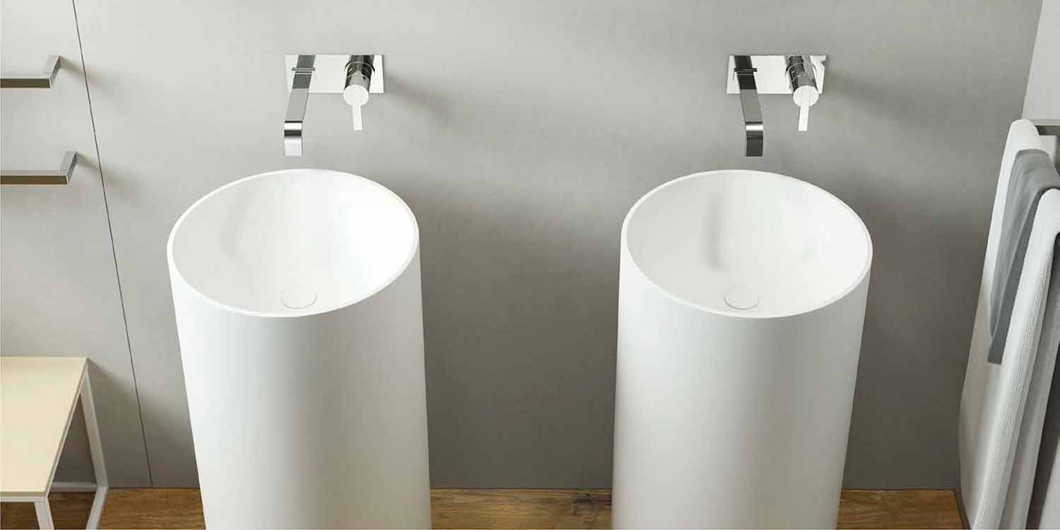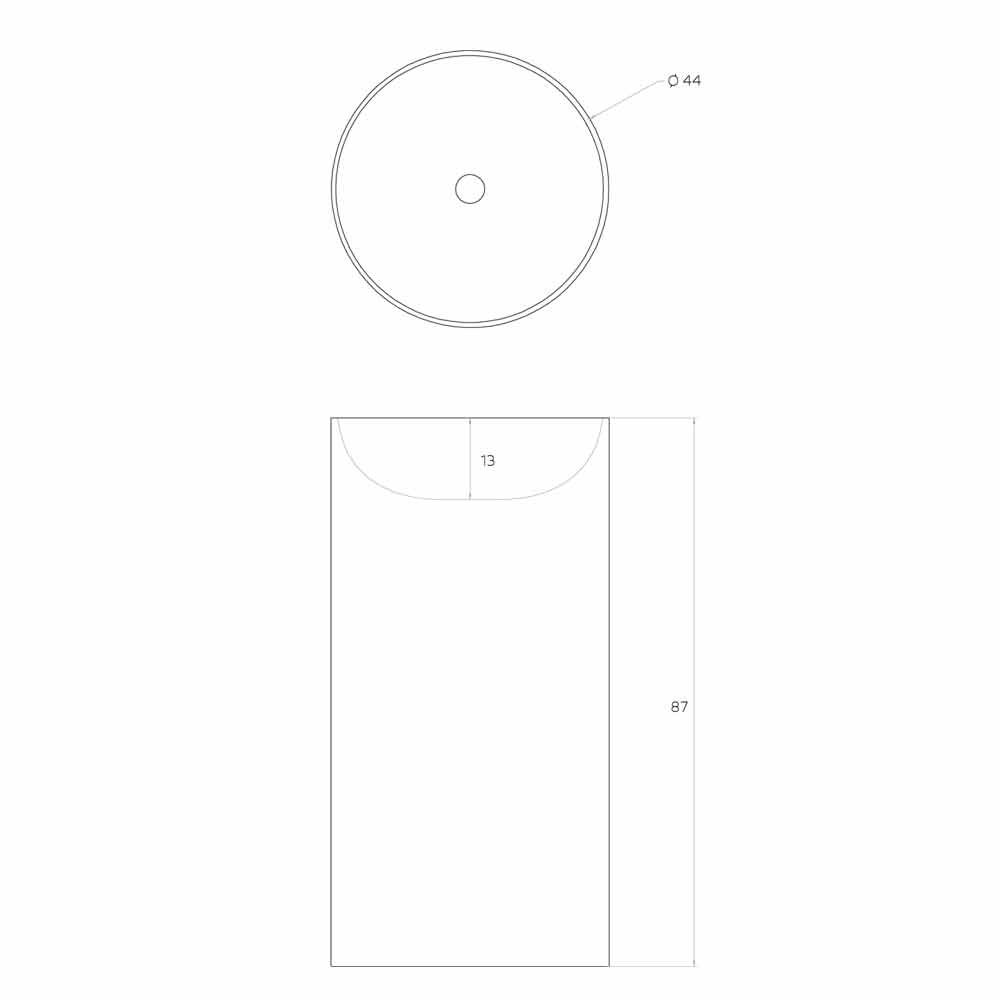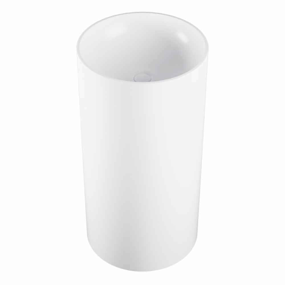 Rumo is a contemporary and modern design cylindrical washbasin in Luxolid, prepared for freestanding installation; perfect to valorize your bathroom.