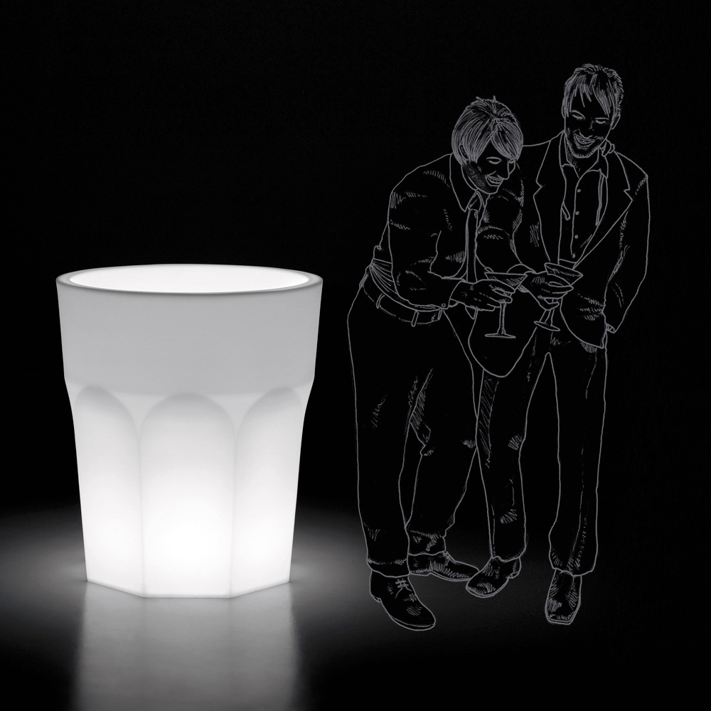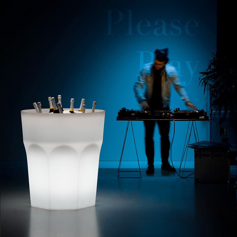 This decorative vase represents the ideal solution to combine design and practicality in a single product thanks to the particular glass shape which, together with the LED light that illuminates it, makes it unique in its kind, allowing you to furnish any outdoor space with taste and personality, illuminating the at the same time the space in which it is placed. The article is entirely made in Italy in polyethylene characterized by excellent resistance to the sun, shocks and heat. Born as a simple decorative vase for medium / large plants, this product is also ideal for parties or outdoor events used to cool bottles when filled with ice. Includes cold light LED kit with 20W class A bulb, polycarbonate shell, 280 cm long black cable and splashproof plug.