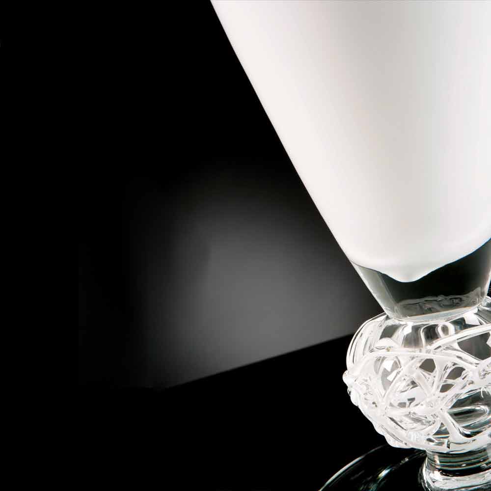 Indoor ornamental vase in white and transparent glass handmade in Italy