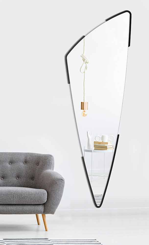 Long modern wall decorative mirror with minimal frame in different colors, shaped design made in Italy.