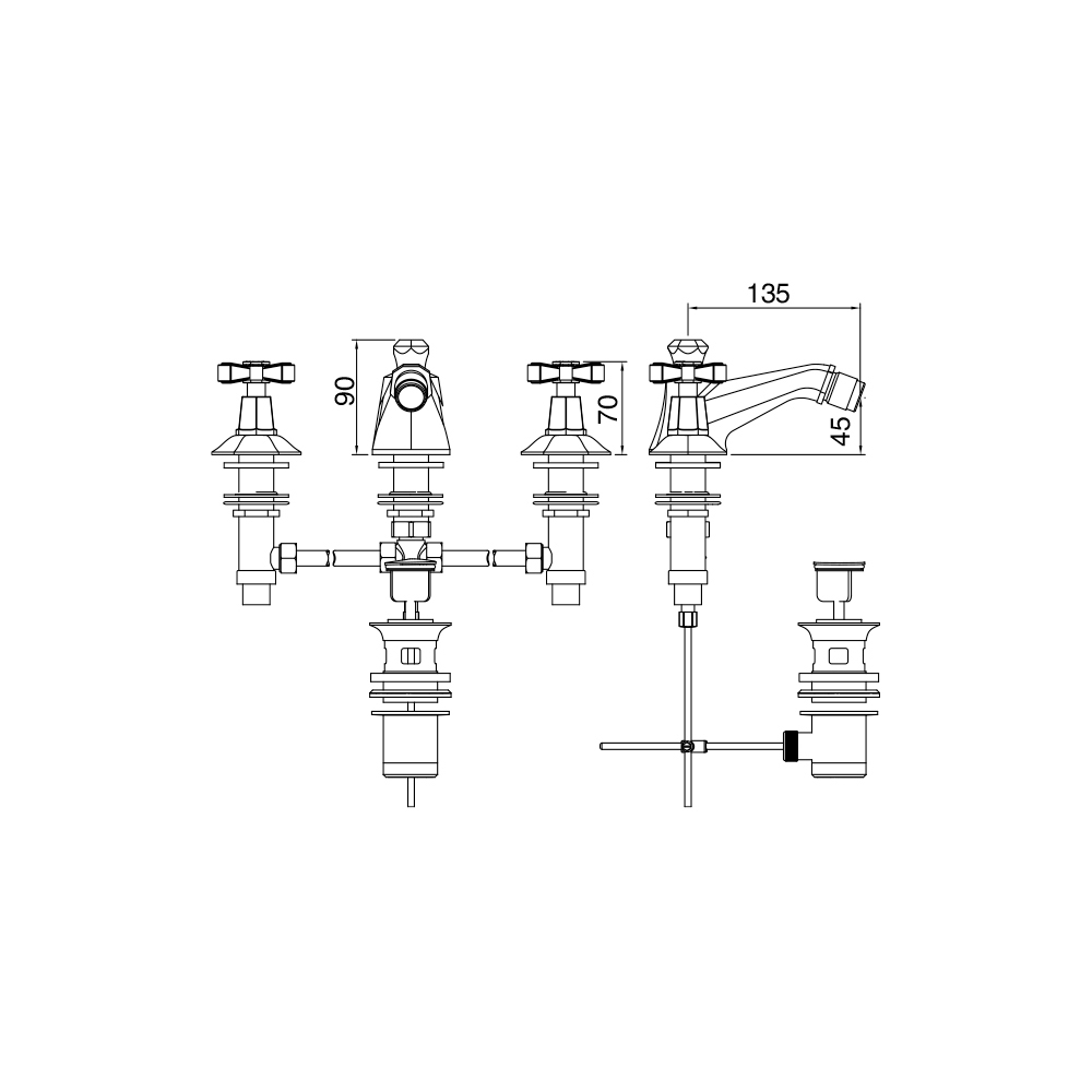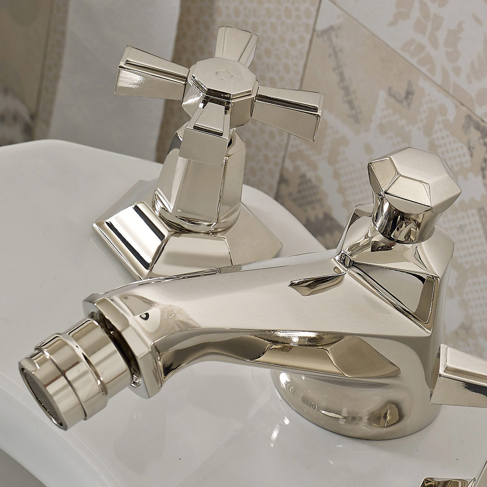Vintage design 3-hole bidet tap in brass Silvana model, made in Italy.