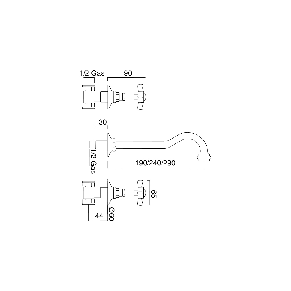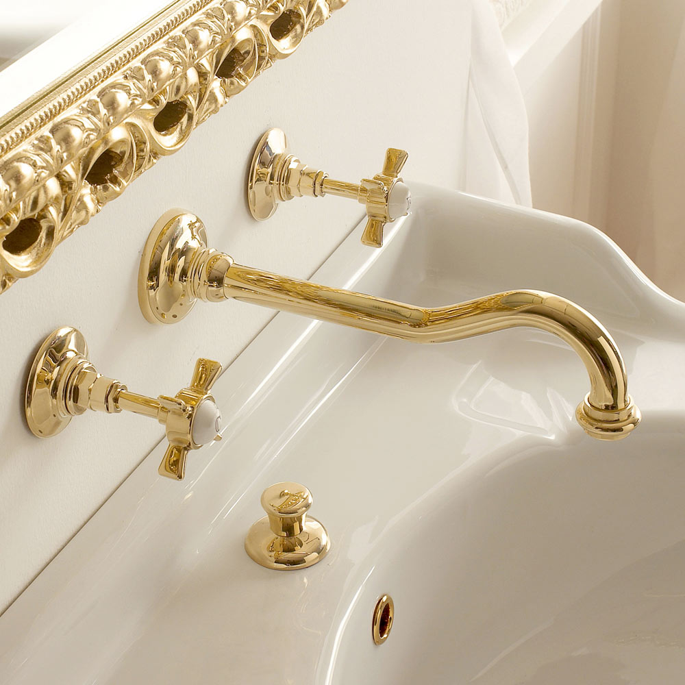Wall mounted tap for washbasin or sink made of Katerina brass, made in Italy.