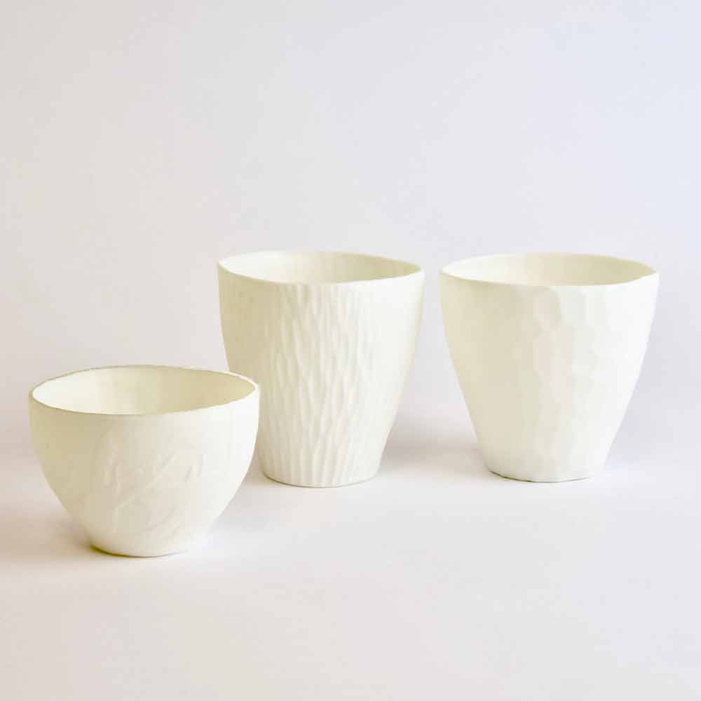 They are obtained through the casting technique, which allows to obtain very thin surfaces in order to emphasize the properties of porcelain and its translucency, evoking its sensaulity and uniqueness.