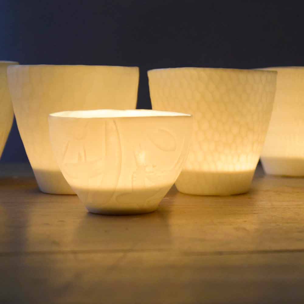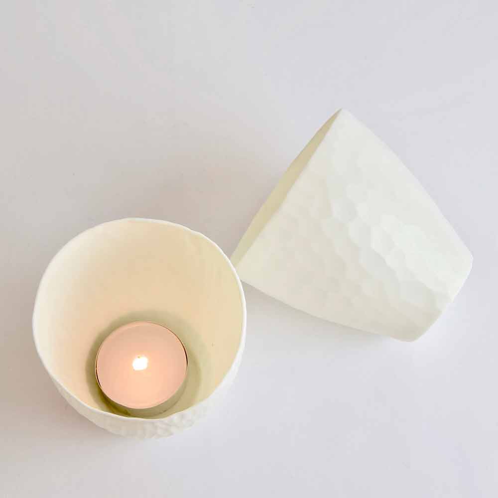 Porcelain is an extremely resistant material that is fired at a temperature higher than that of traditional ceramic, so it is more robust and durable, highly resistant to stains and waterproof, thanks to its greater density, hardness and uniformity. Its properties are guaranteed by the double firing up to 1240 °, following which the very translucent porcelain takes on a precious warm white color, which heats up further once the candle is lit inside.