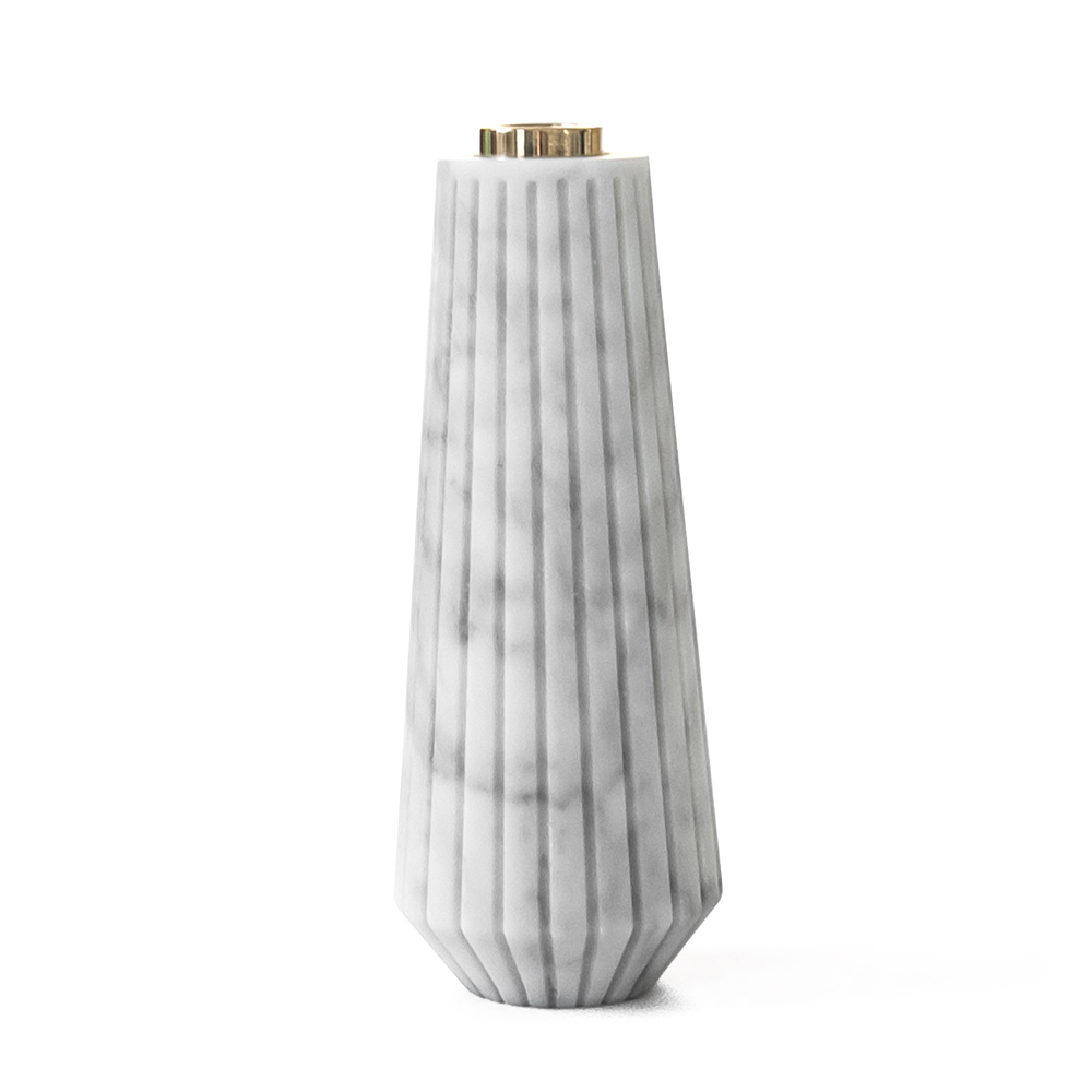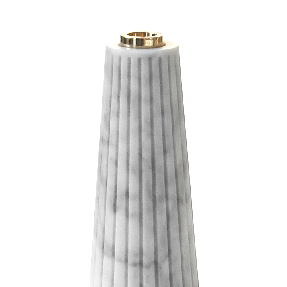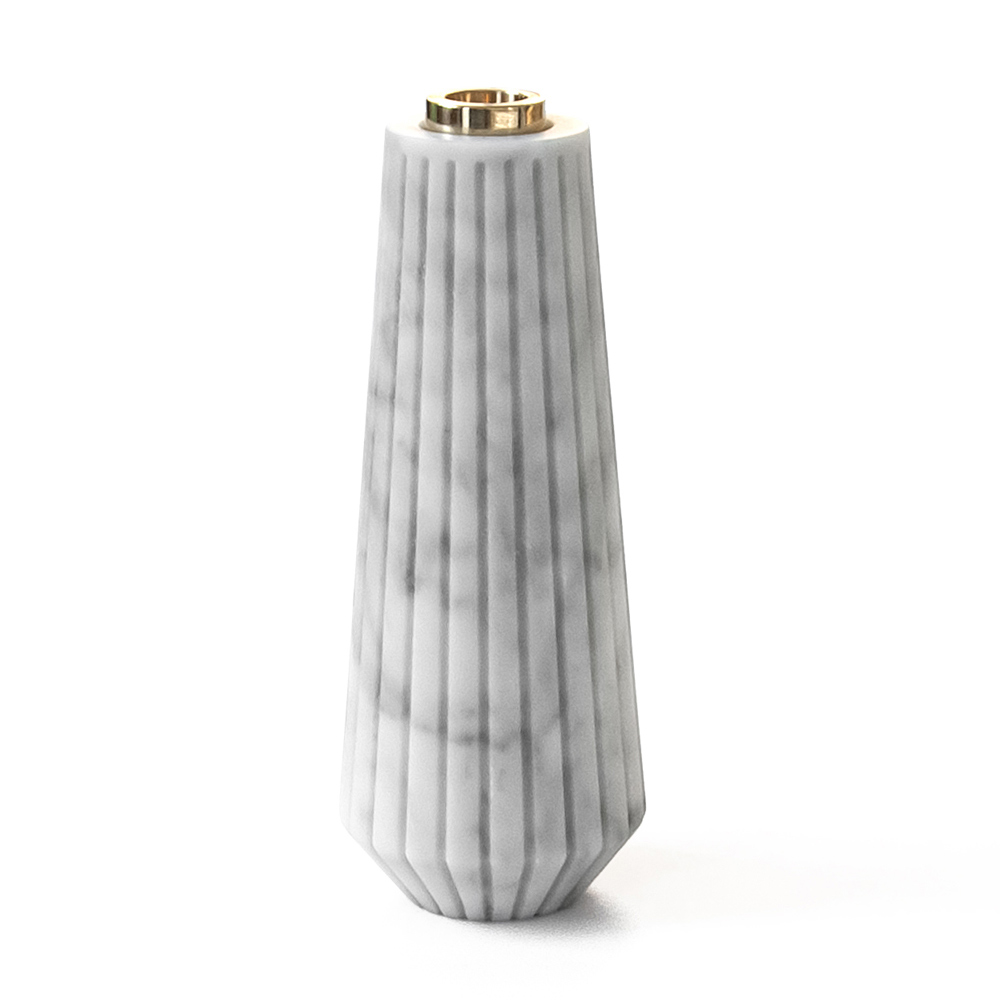Small striped candle holder in white Carrara marble and brass, made in Italy.