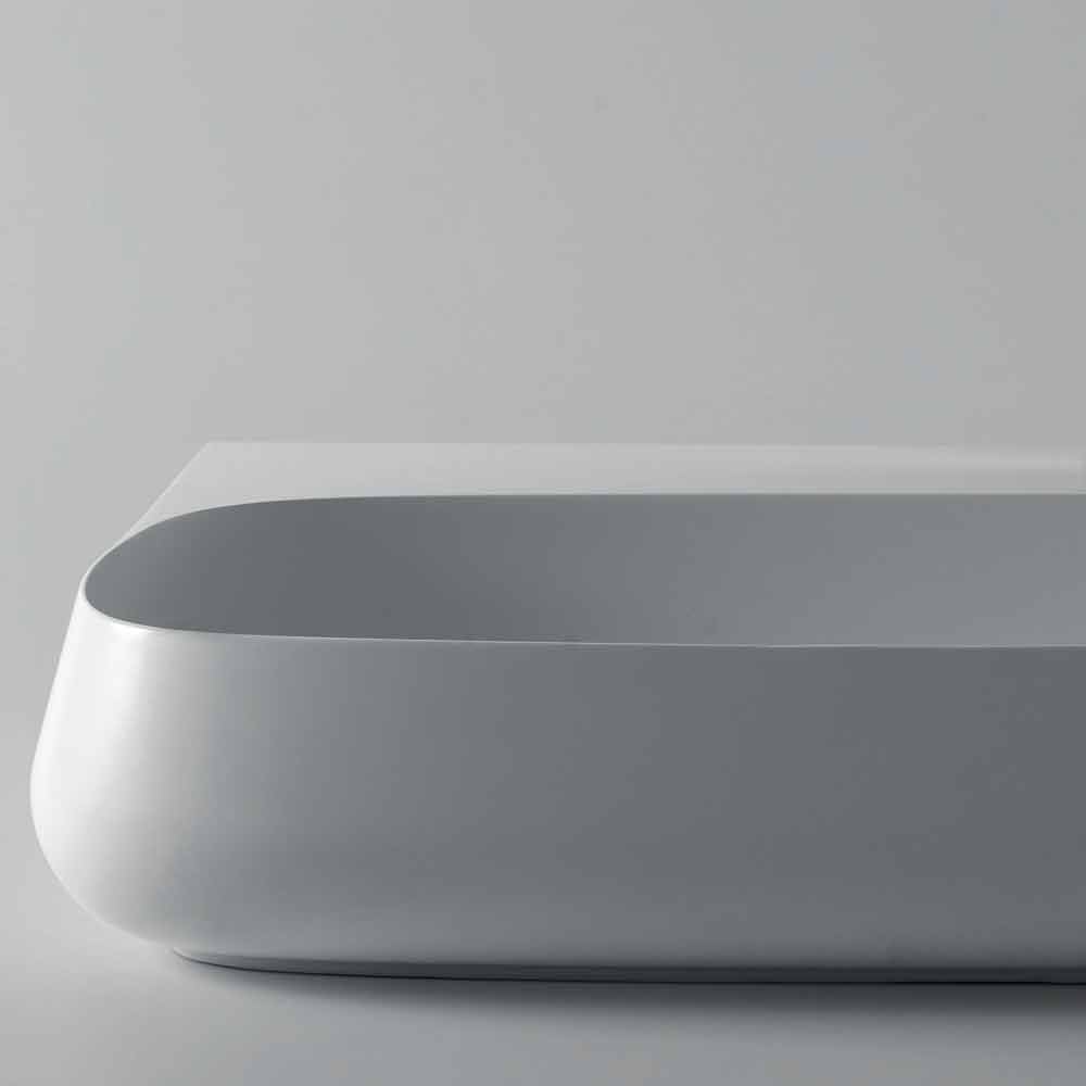 The Gais washbasin can be installed on the counter or suspended. (Fixing kit for suspended installation not included.)