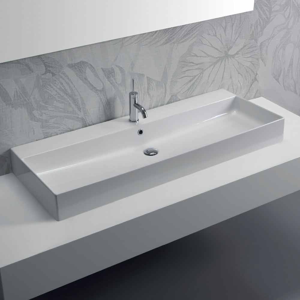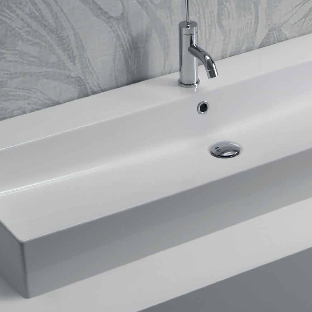 The items of this line have a modern and contemporary design, such as the countertop sink L60 cm. The used material is the vitreous china, a kind of glazed ceramic.
