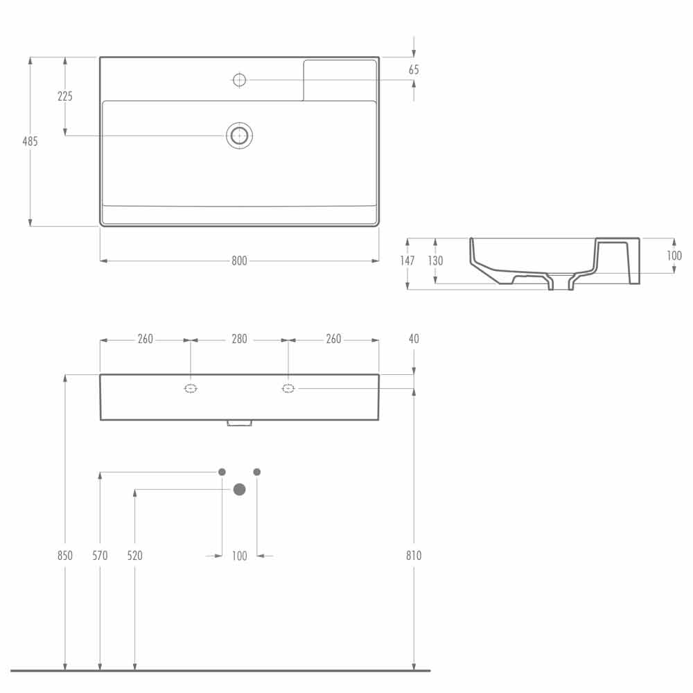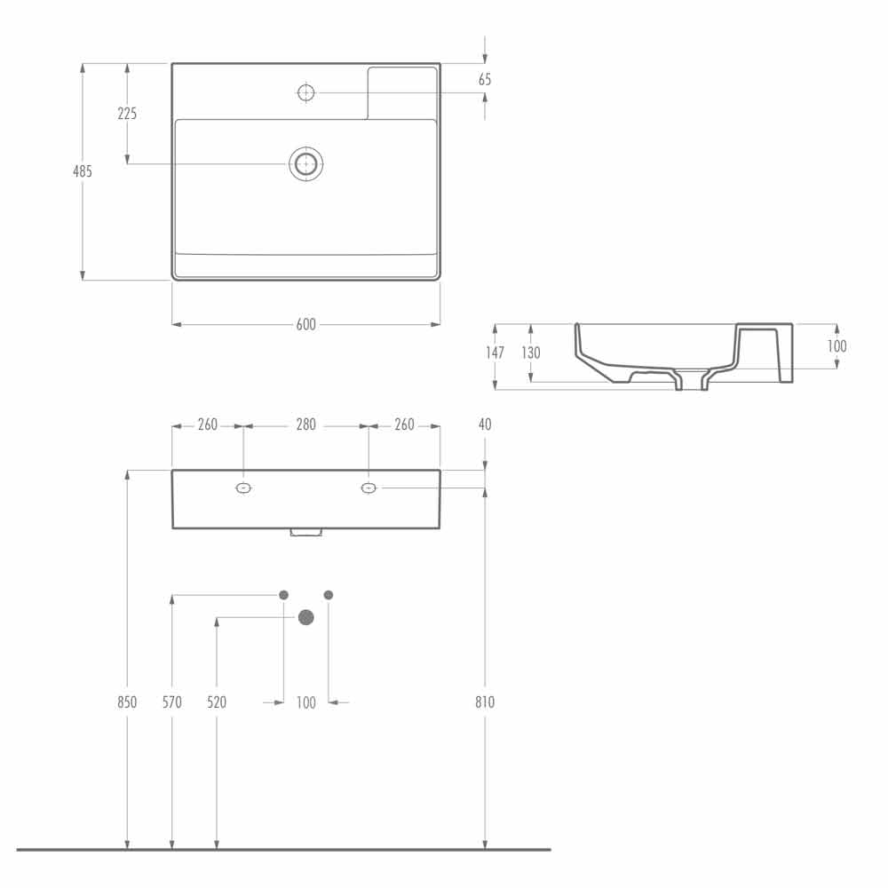 A tap hole is expected, yet at the moment of the order it can be realized with three holes or with no hole in case it is decided to use a wall tap. Tap is NOT included.