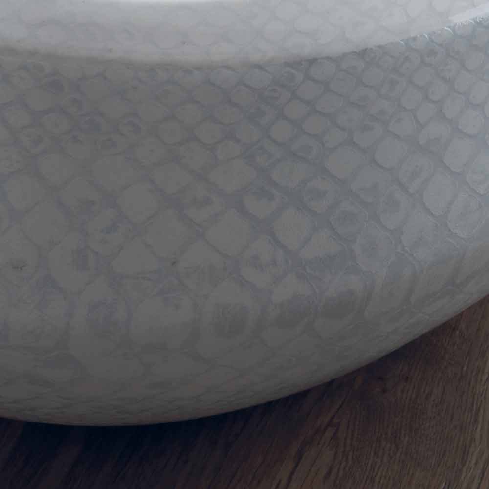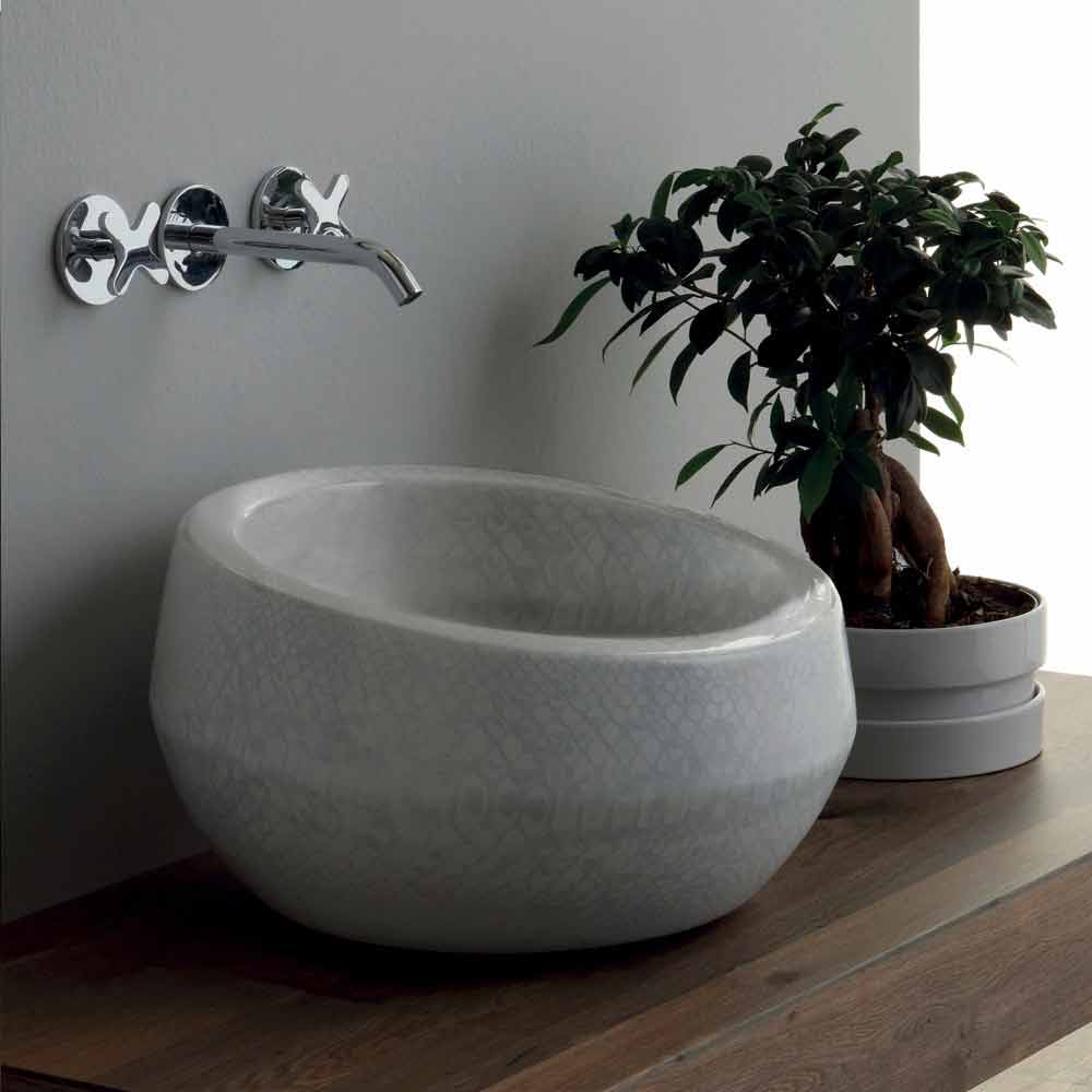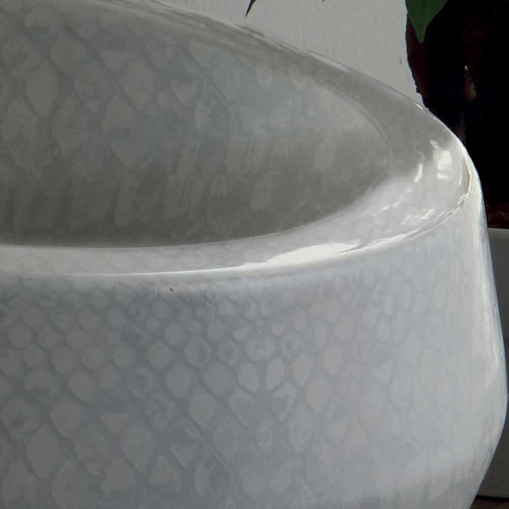 Elisa is a ceramic countertop washbasin with white python finish, hand-made by Italian artisans in every detail.