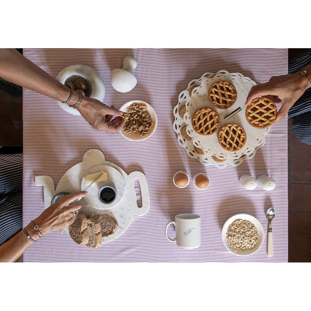 Design egg holder characterized by the white Carrara marble of which they are composed. Handcrafted by professionals specialized for generations in marble processing. These are unique pieces as each block of marble used differs from the others for veins and shades.