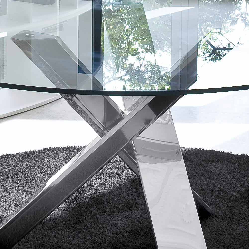 Design round table (d.150) with crystal top made in Italy, Cristal