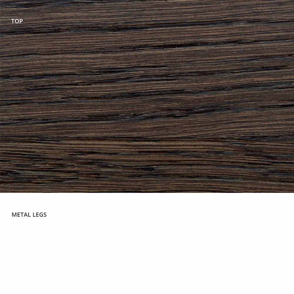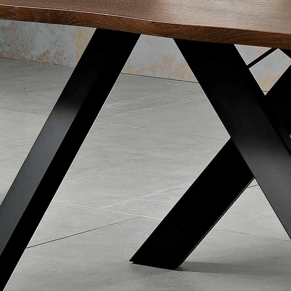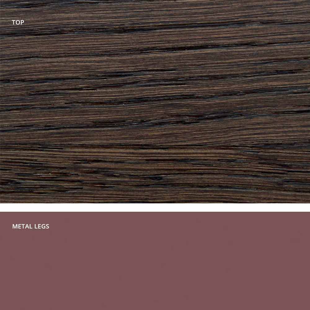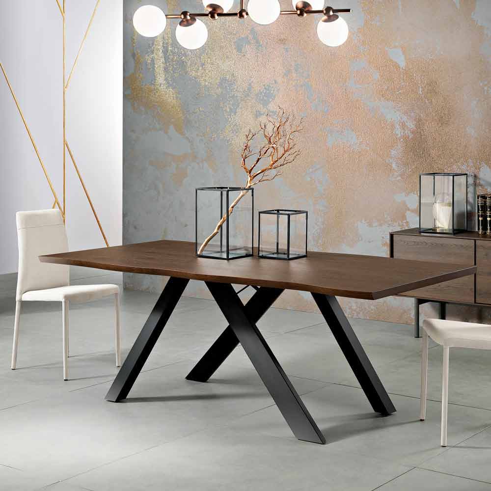 Wilmer is an dining table realized in Italy with a painted metal base and a surface in solid wood particle (thickness 35mm) veneered on the lond sides.