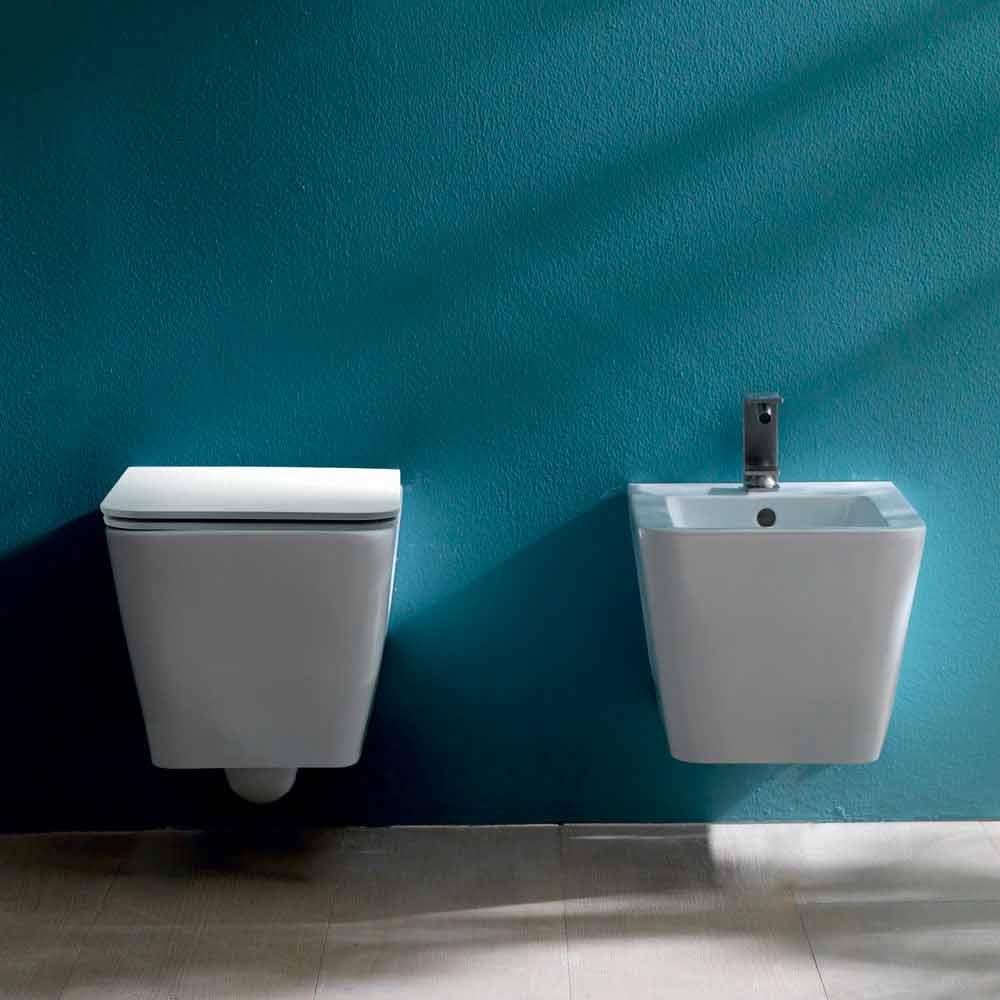 Design ceramic wall-hung bidet Sun Square 55x35cm, made in Italy