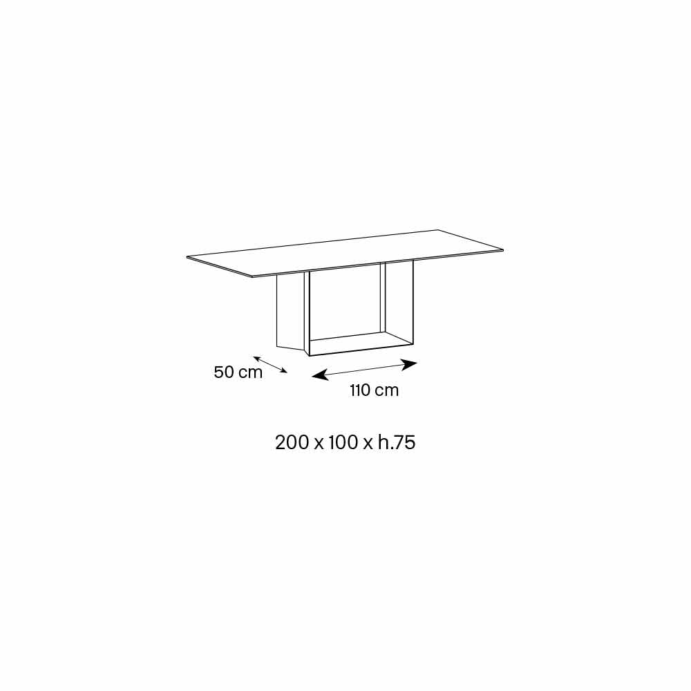 L 200 x P 100 x H 75 cm 10 places, top thickness 8 + 5 mm;