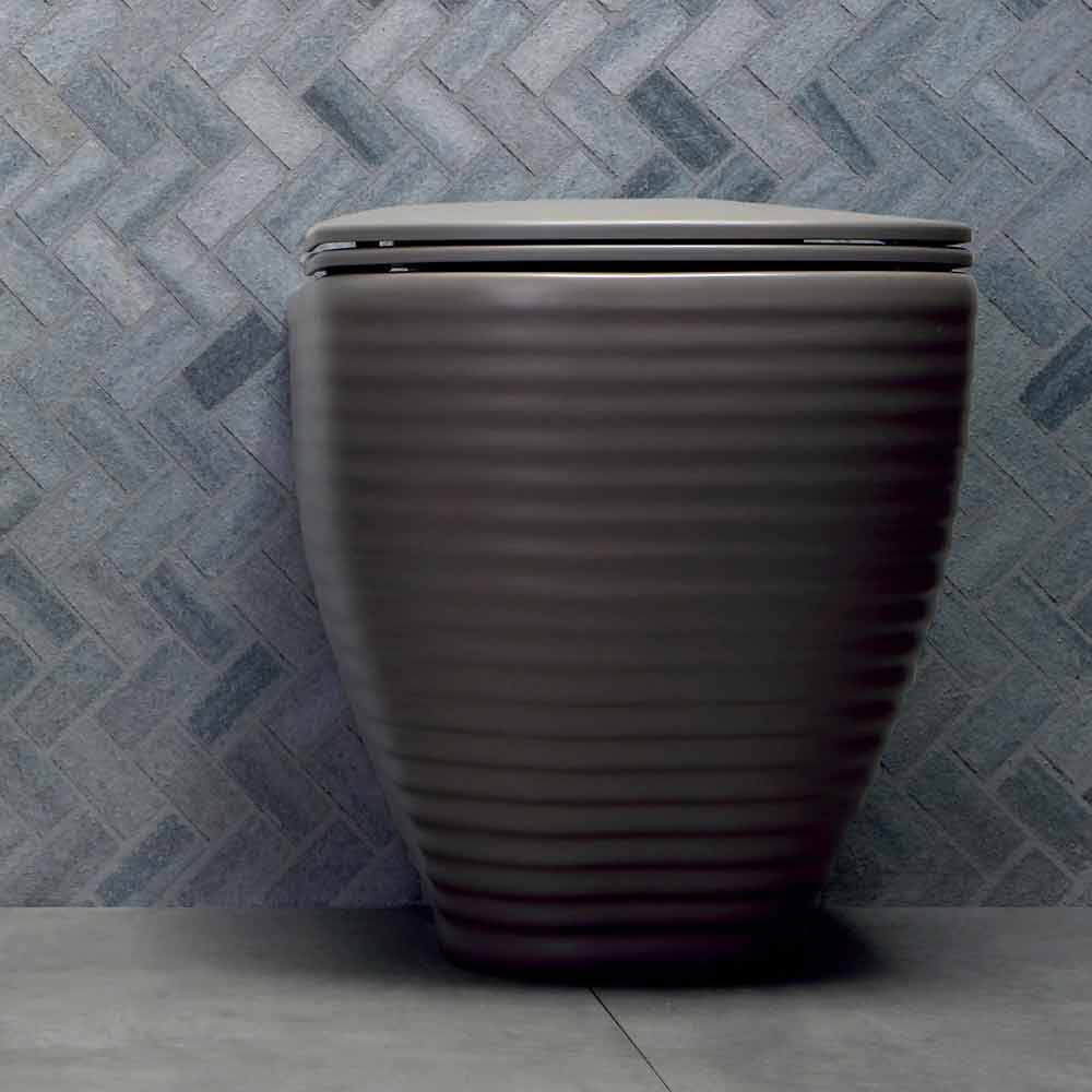 It comes complete with ground or wall discharge connection. Customize your bathroom with functional and decorative furniture at the same time. The toilet vase Trabia confer a touch of modernity thanks to his minimal but refined style, characterized by horizontal grooves. It is available in different colours and in shiny or matt finish.