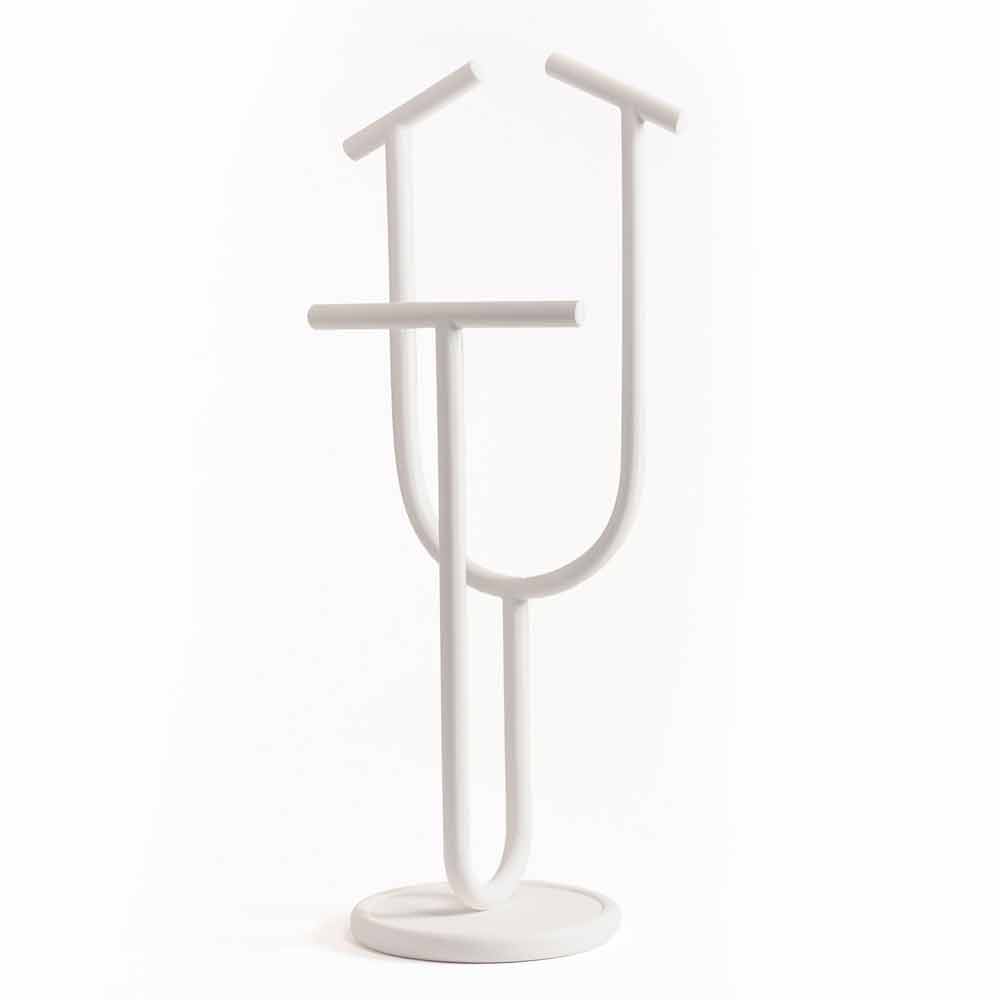 The valet stand is an element that is essential for organizing clothes in your bedroom or walk-in closet and it is therefore important to choose the right one taking into account your needs and the surrounding furnishings. This product is entirely made in Italy in RAL painted steel and has an elegant and minimal design structure that combines functionality and a wonderful decorative aspect.