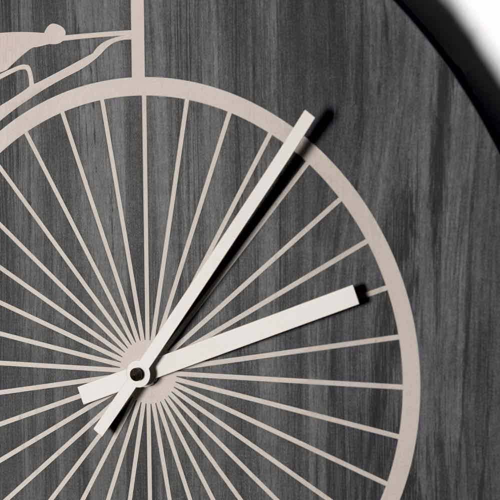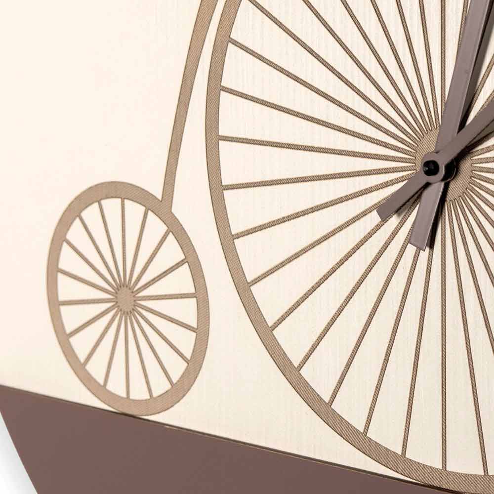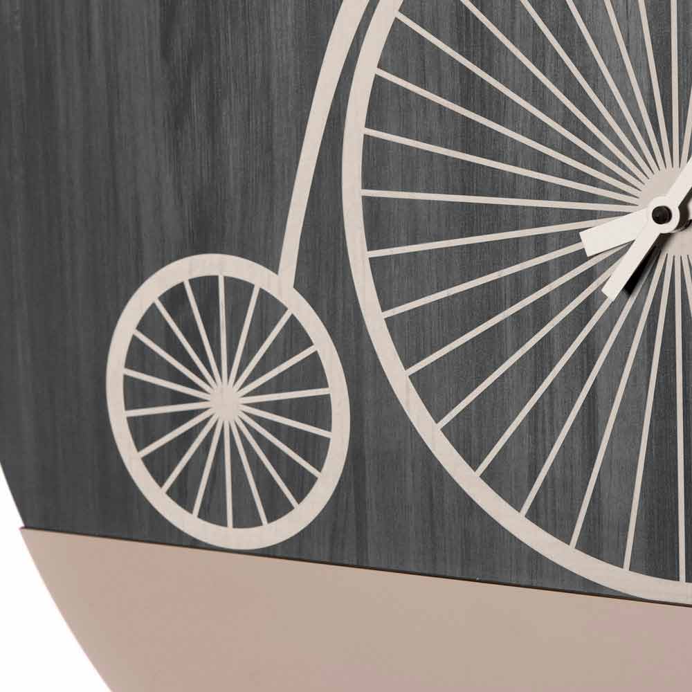 The peculiarity of this wall clock consists in its laser-marked detail that depicts a bicycle that becomes the heart of the complement by marking the hours with its rays. It is a round design complement made of wood available in two variants that invites you to enjoy the outdoors while cycling around the city.