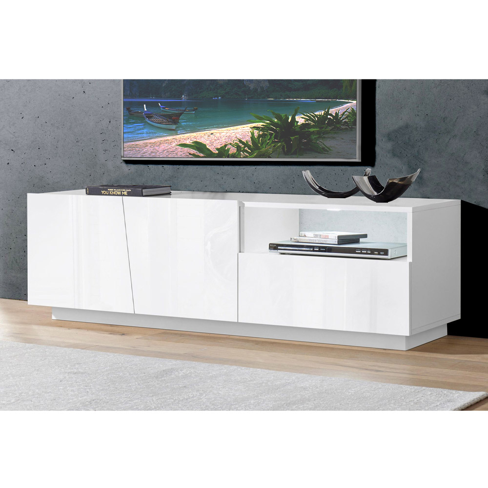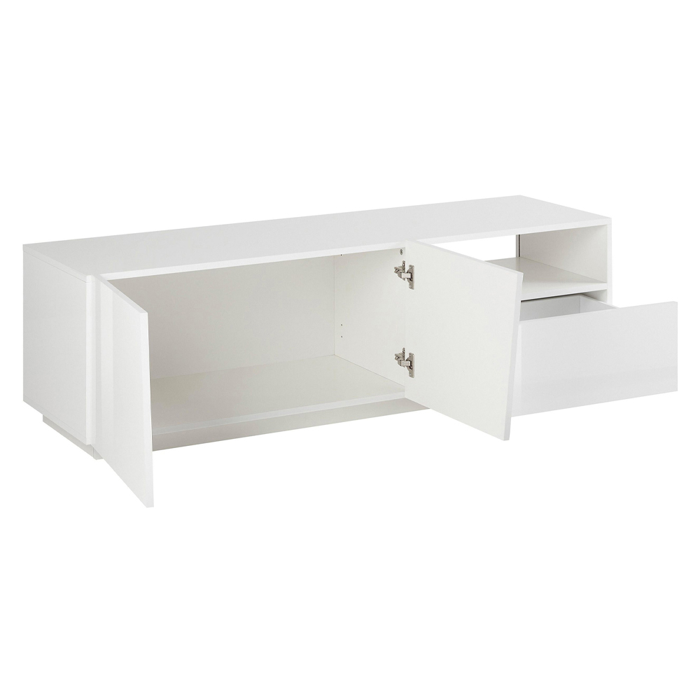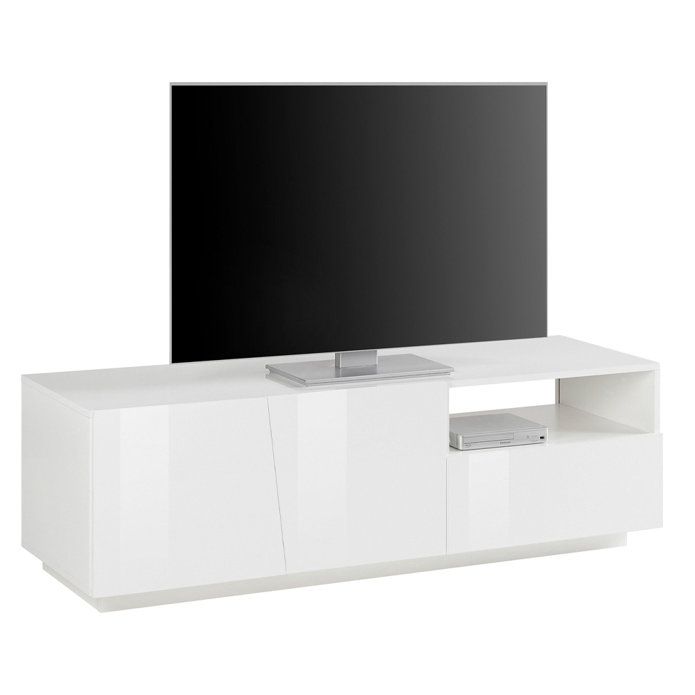 TV stand for the living room made of wood with 2 doors, 1 drawer and open compartment, made in Italy.
