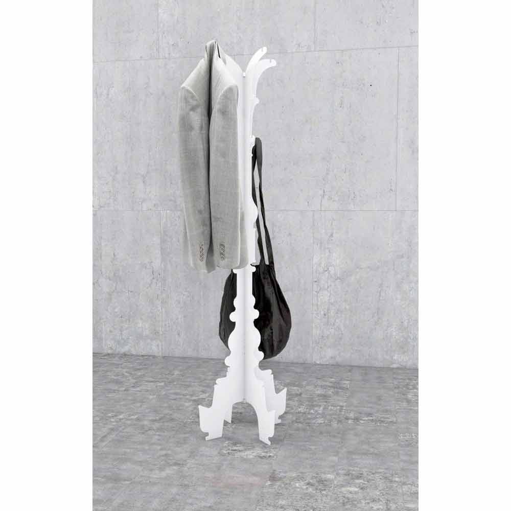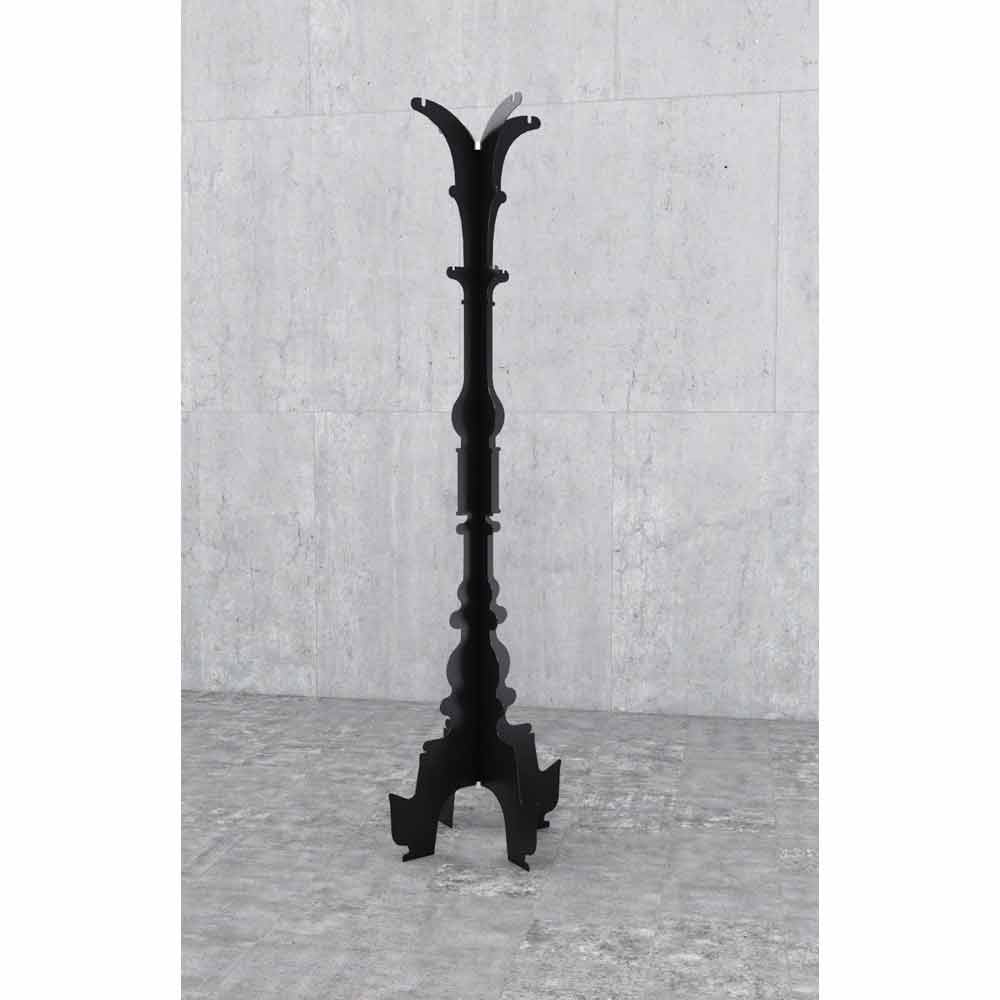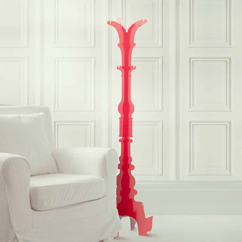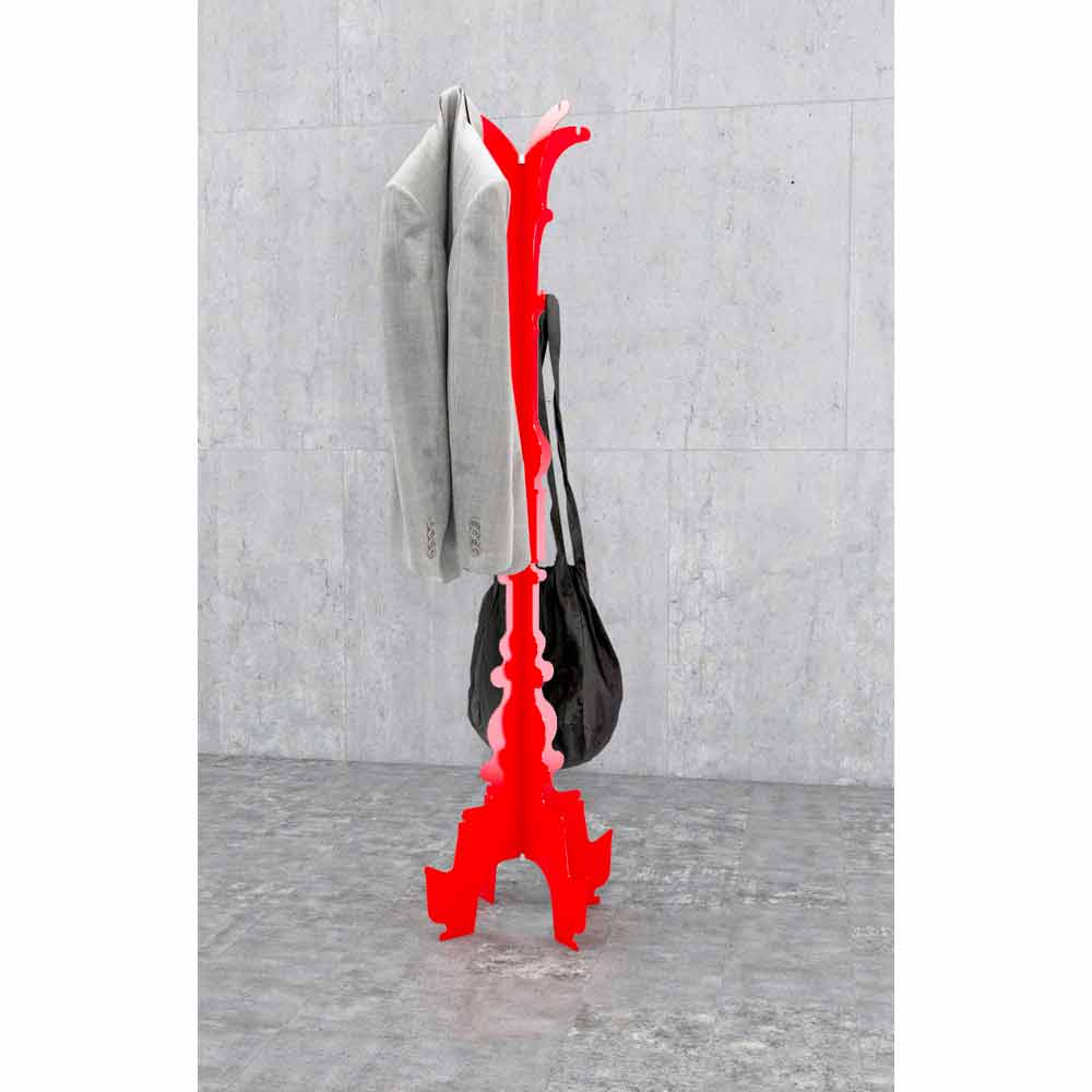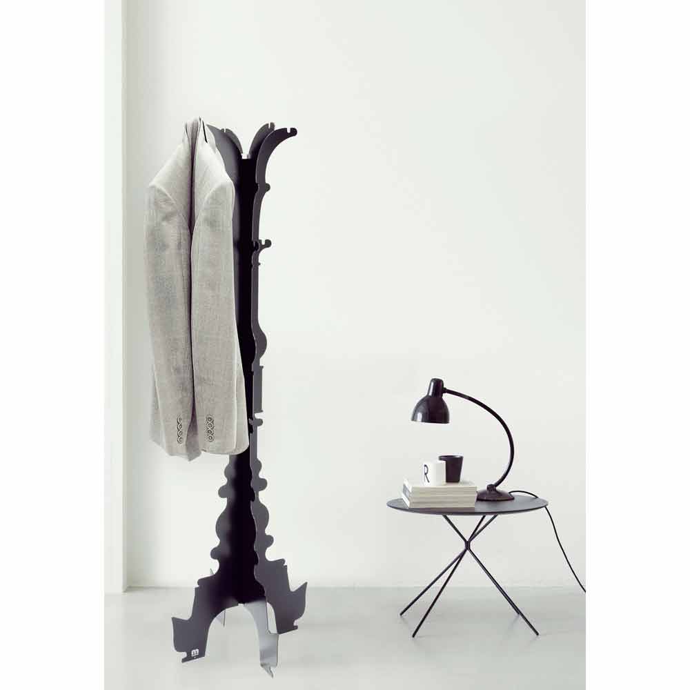 Designer coat stand Barokko by Mabele This modern design coat stand takes its shape from the baroque decorations. Barokko was inspired by the classical style, but with a pop vibe. Made of painted metal sheet, it will be able to embellish both modern and traditional rooms.
