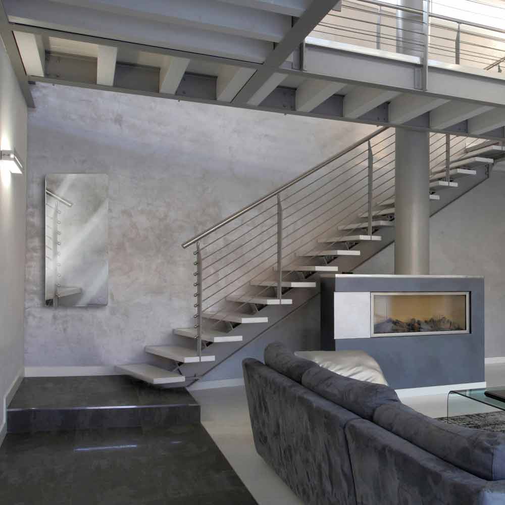 - Design: The radiators are the result of a careful study on shapes and on their visual-emotional impact on man. Their clean and essential design, together with the customisation of finishes and size, makes them adaptable to any environment and style, from classic to cutting-edge modern. Compared to traditional heat emitters, the radiators feature limited overall dimensions as, by minimizing the thickness of the plate, they reach a maximum overall size of 6 cm from the wall.