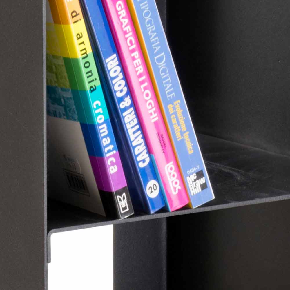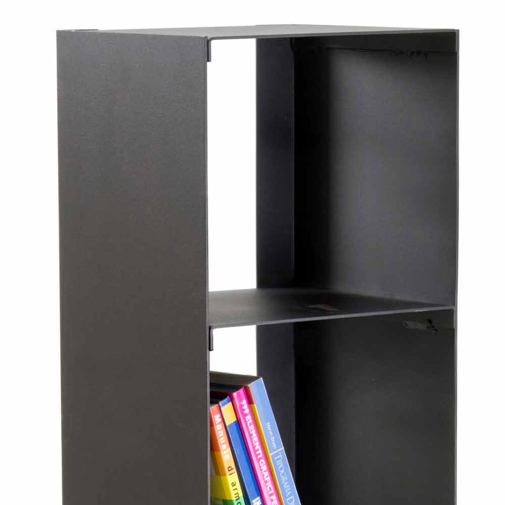 Indoor log holder in black steel with shelves, modern design made in Italy.