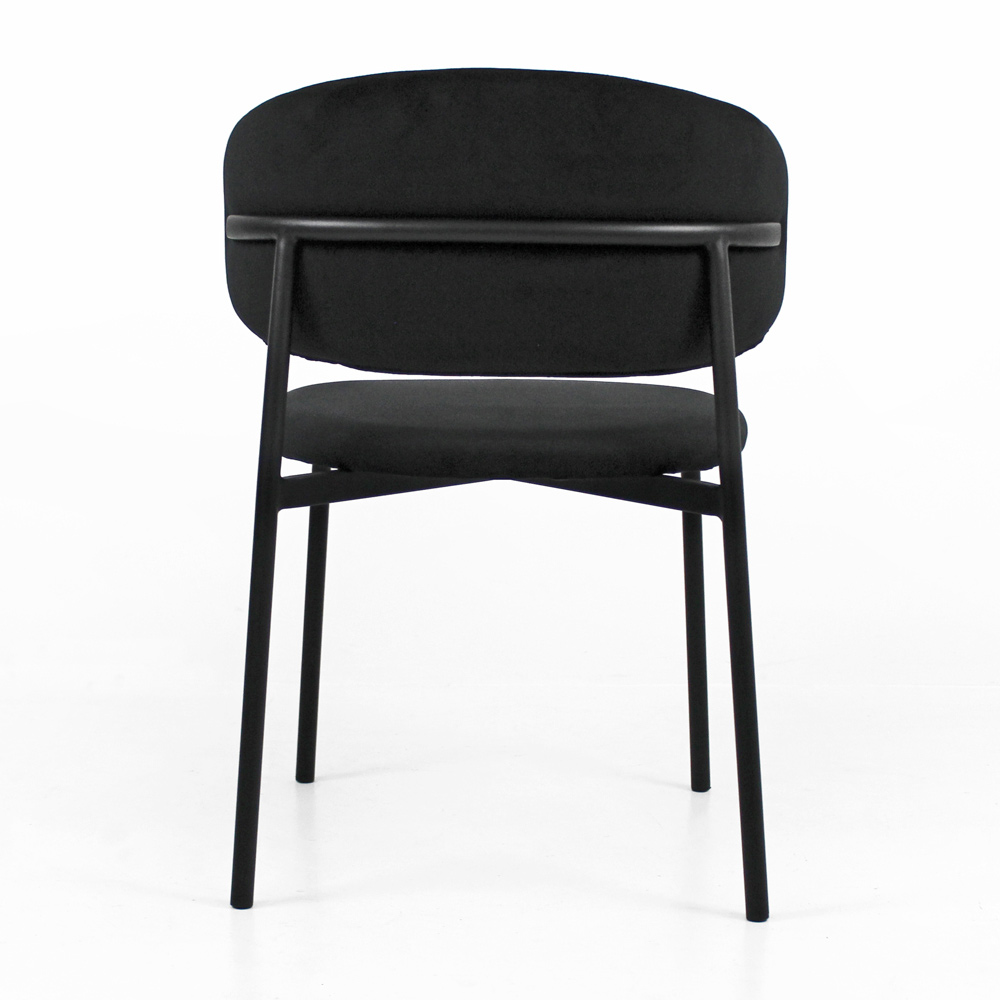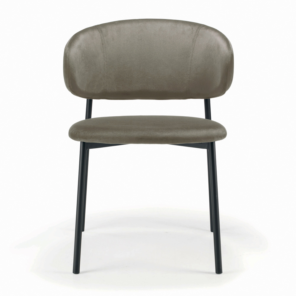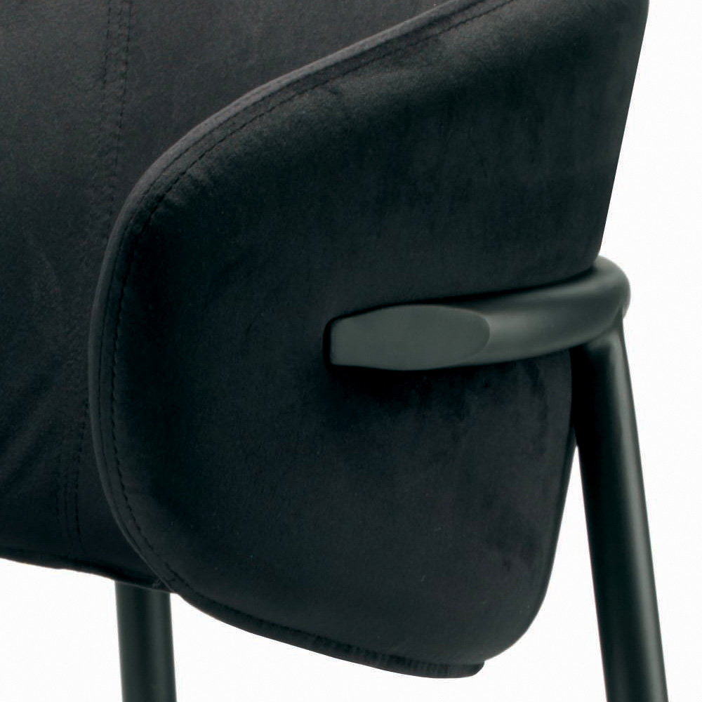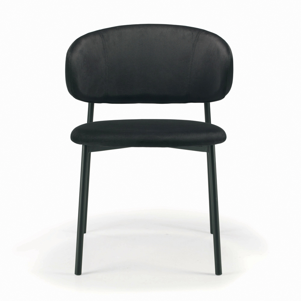 Living room chair made with seat and backrest in fully covered steel and legs in black lacquered steel. This chair is the perfect idea for all those who want to furnish indoor environments with a touch of uniqueness and timeless elegance. The comfortable and comfortable seat and the materials used guarantee practicality and functionality on every occasion.