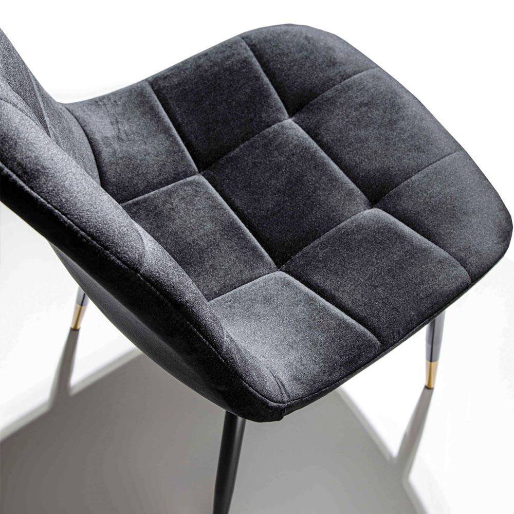 Chair for dining room or kitchen with seat covered in stain-resistant velvet and base in black metal with painted tip. Its design is conceived to ensure timeless elegance , a comfortable seat and a versatile look that can create a captivating aesthetic when placed next to the dining table and all the surrounding furnishings. This chair proves to have a refined soul thanks to the use of velvet, a precious material with a retro style which, when combined with the modernity of the black metal and the painted details that characterize the 4 legs, creates an avant-garde design, capable of adapting to both contemporary-style environments and more classic furnishings within which to create an innovative contrast of styles and personalities.