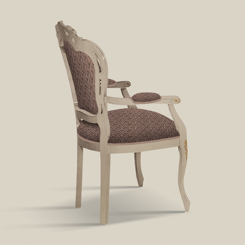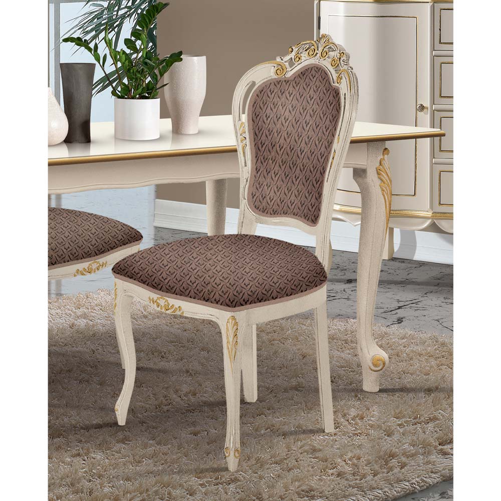 Classic style dining room chair made with precious wood in white finish and fabric padding, available in the version with or without armrests. All the style and craftsmanship that characterize the workmanship emerge in this sumptuous furniture thus making it a refined complement capable of embellishing the environment in which it is placed. Completely made in Italy and handcrafted by skilled master craftsmen , finished with wisdom and taste for elegance. The production is carried out using fine materials , and performing the workbyhand with the utmost care and professionalism that distinguishes Made in Italy products.