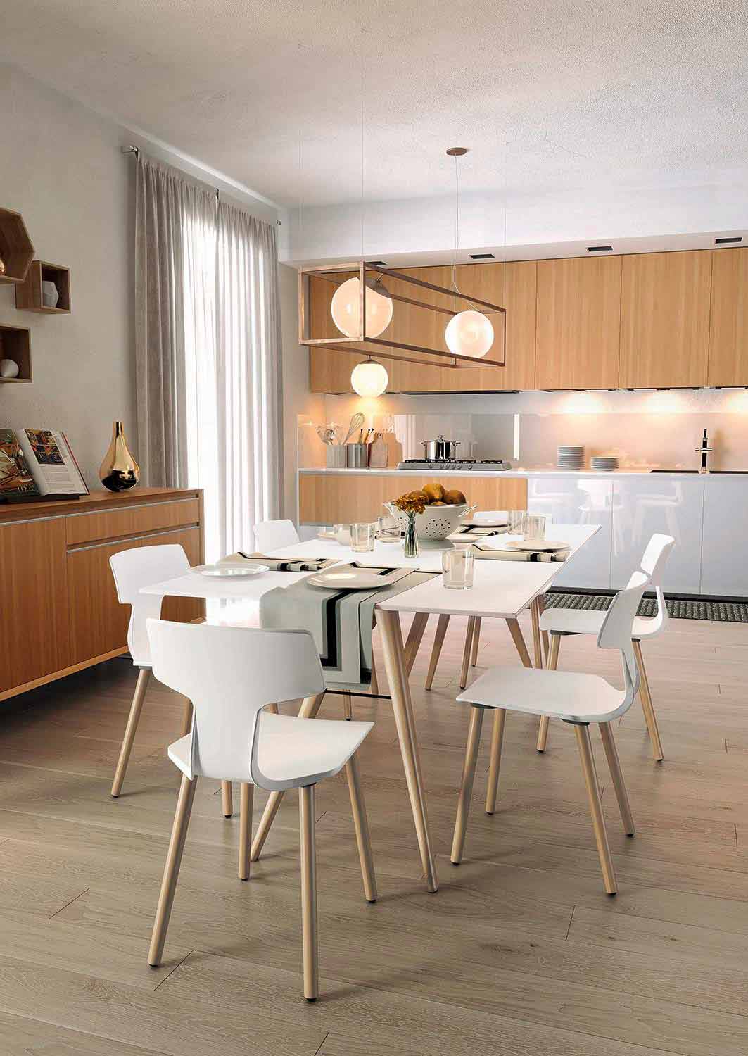 Clover is a chair for dining room or kitchen characterized by a structure made of beech-colored wood which, combined with the polypropylene seat available in 7 colors, makes it an extremely versatile chair perfect for adapting to any dining room or kitchen and to any type of furniture.