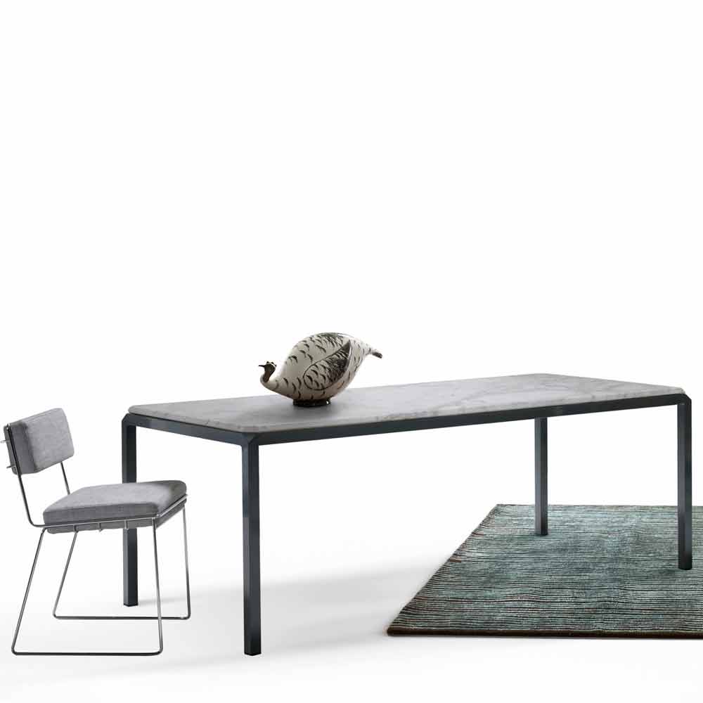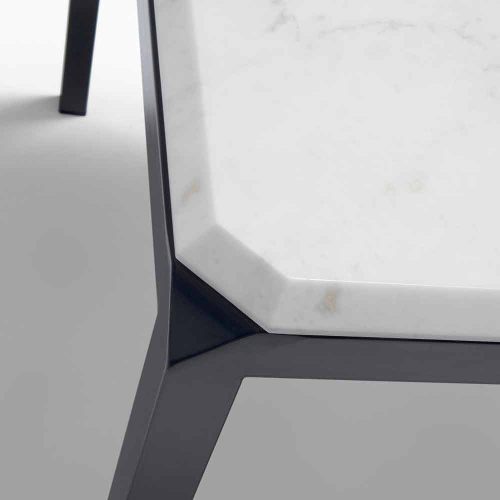 The meticulous attention to detail, the quality of the workmanship, the contrast between the steel structure and the marble top identify the precious .Bebop table.