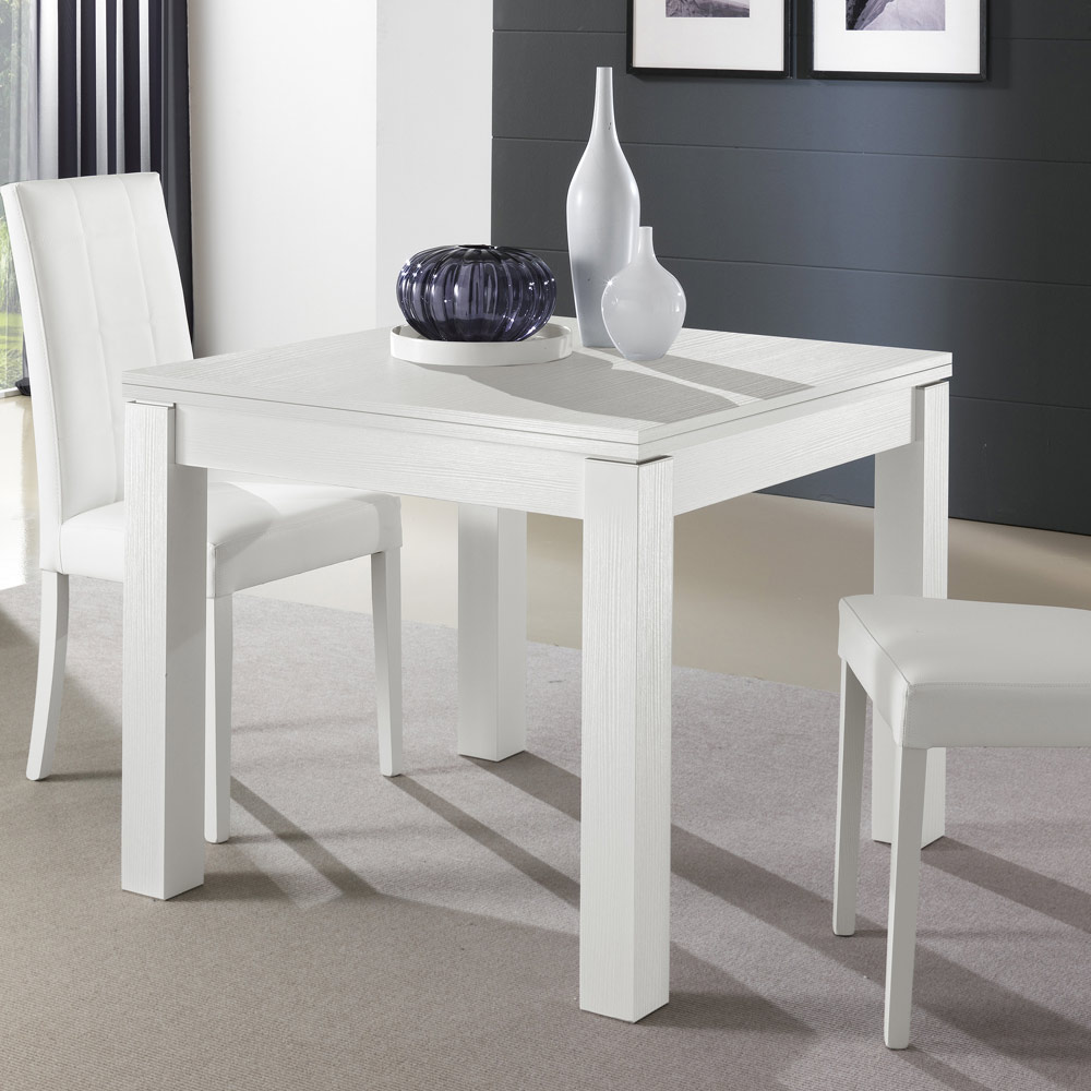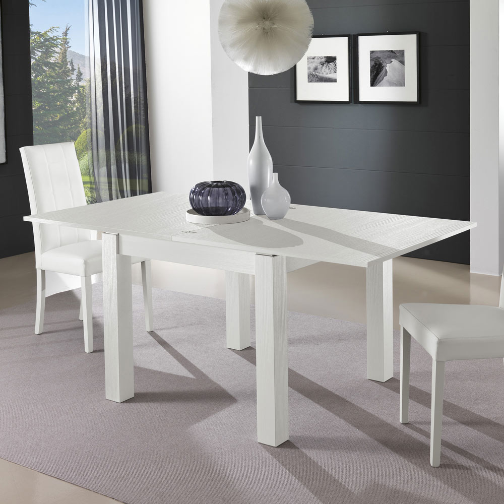Extendable dining table with top, structure and legs entirely made of melamine . A piece of furniture entirely produced in Italy and characterized by an aesthetic characterized by a refined, unique and innovative design. The exclusive element of the base is elegantly coordinated with the shape of the top, almost forming a "sculpture" dedicated to our home.
