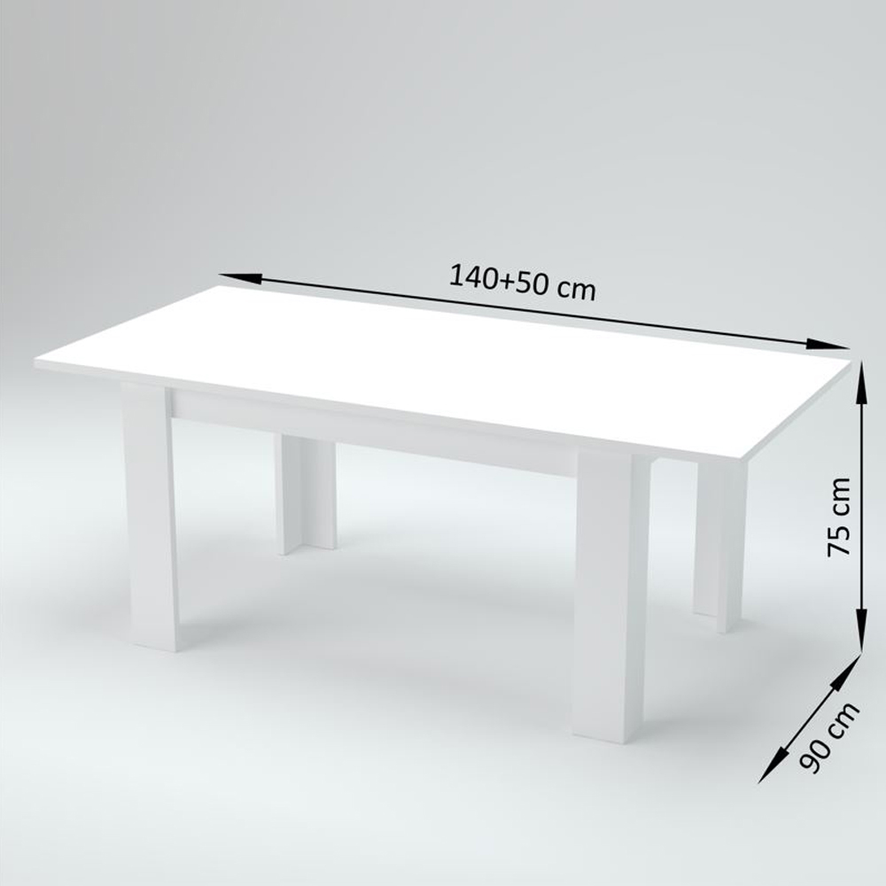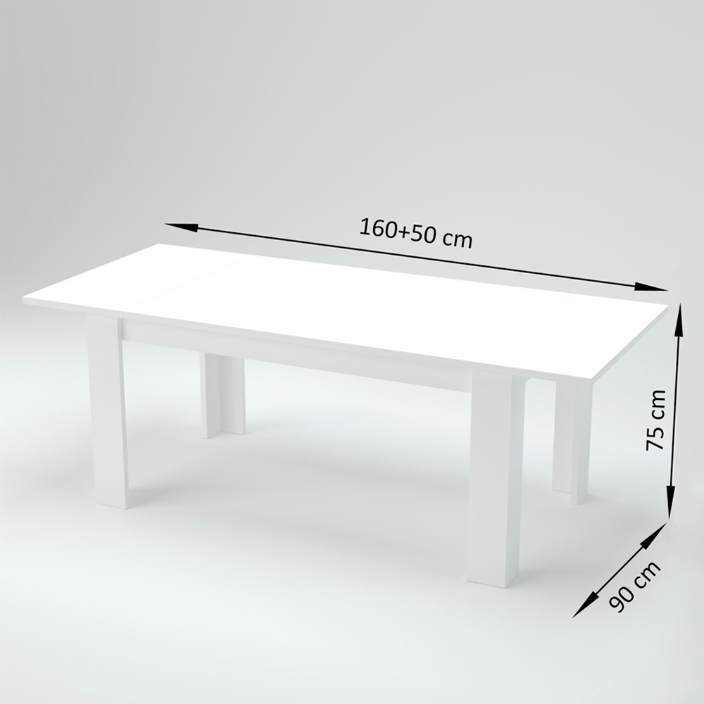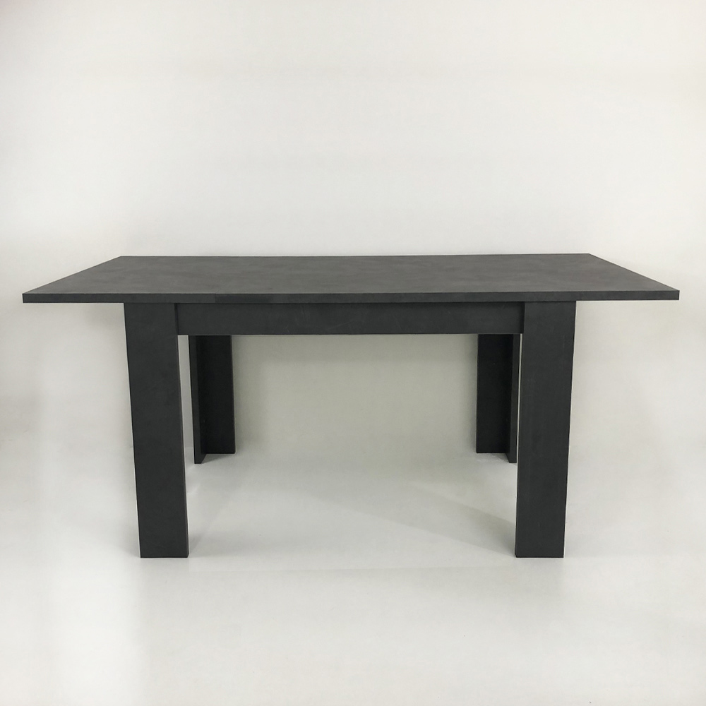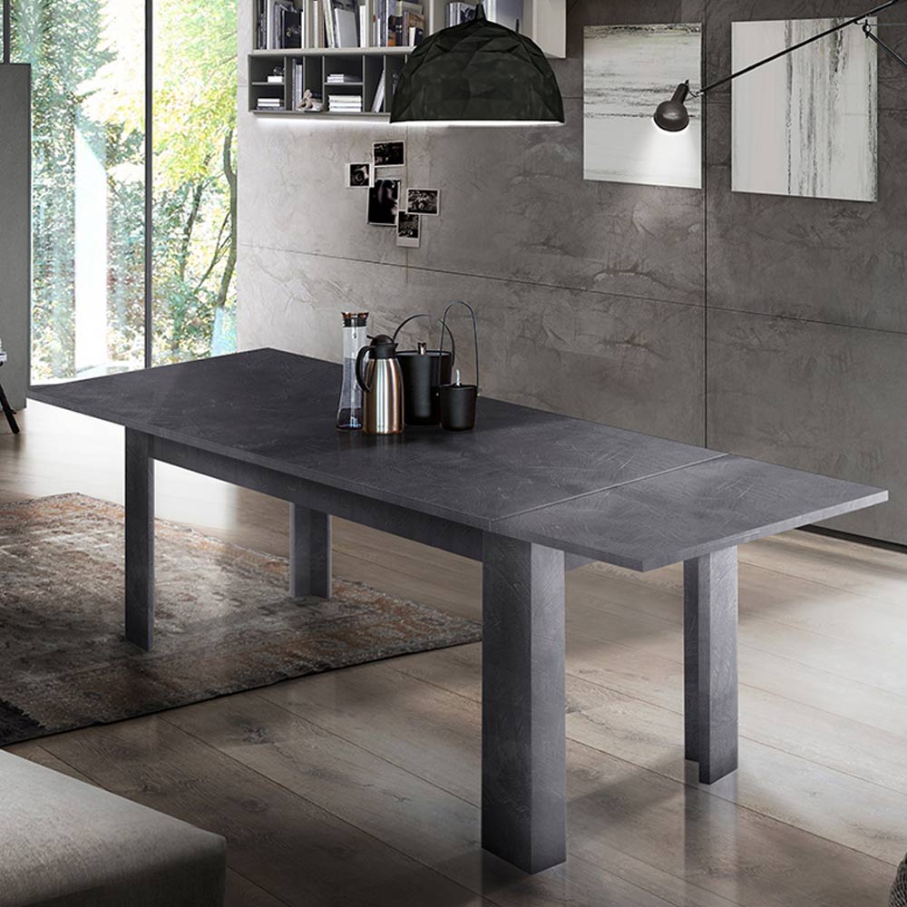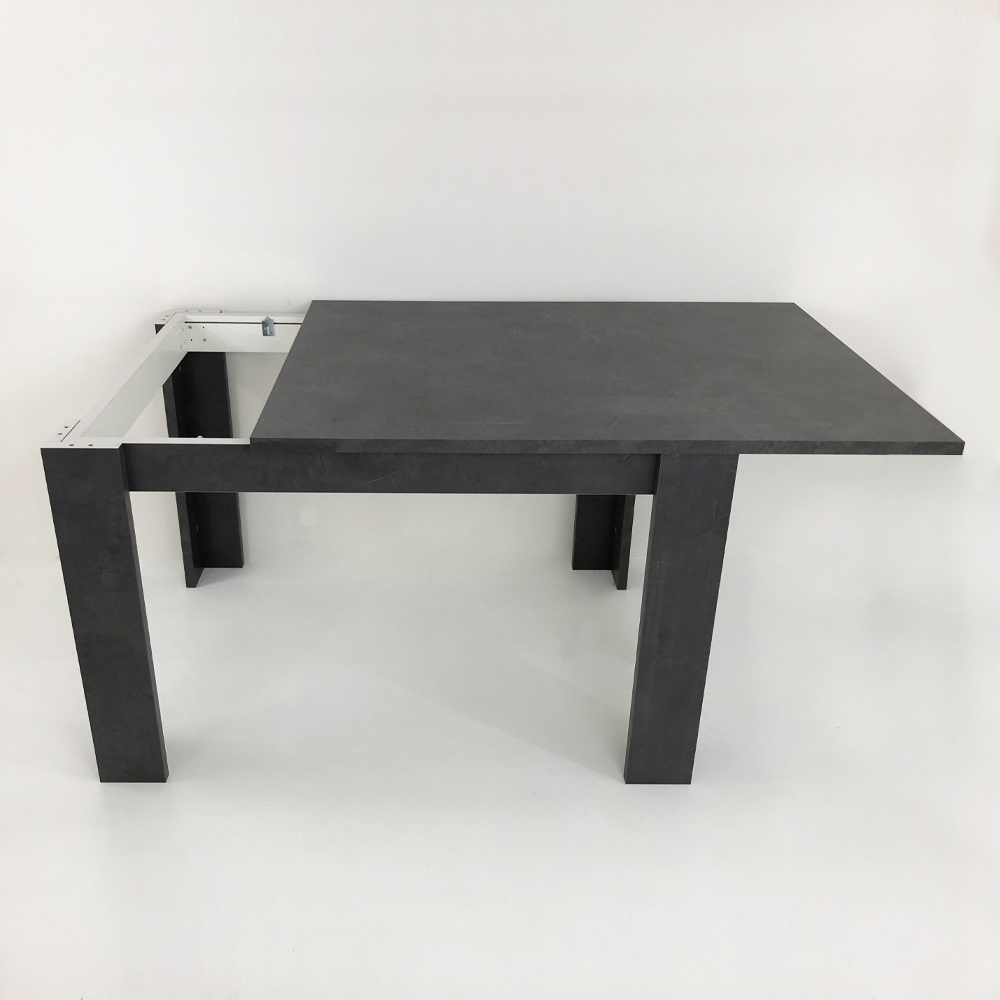 The extendable dining table has a rectangular design that is characterized by clean and minimal lines.