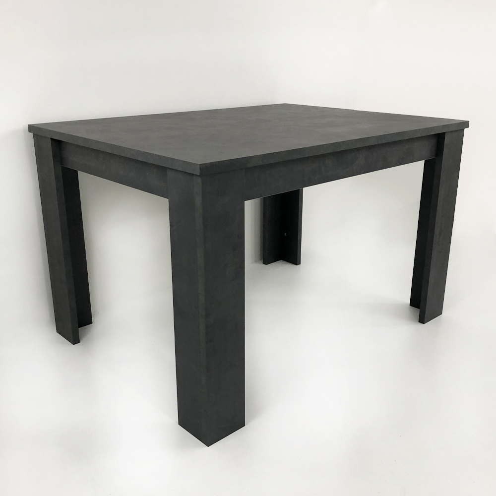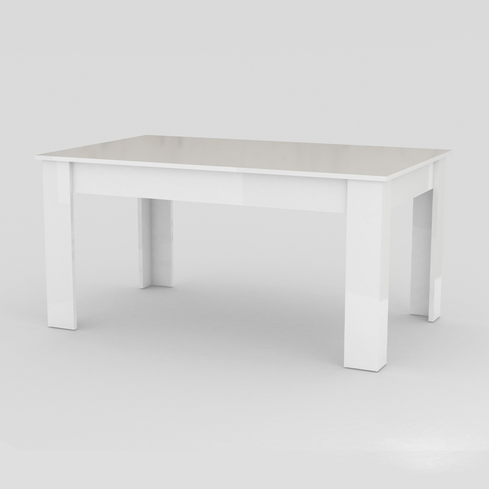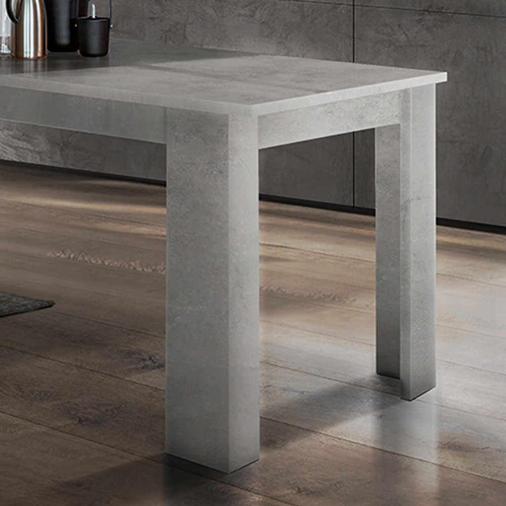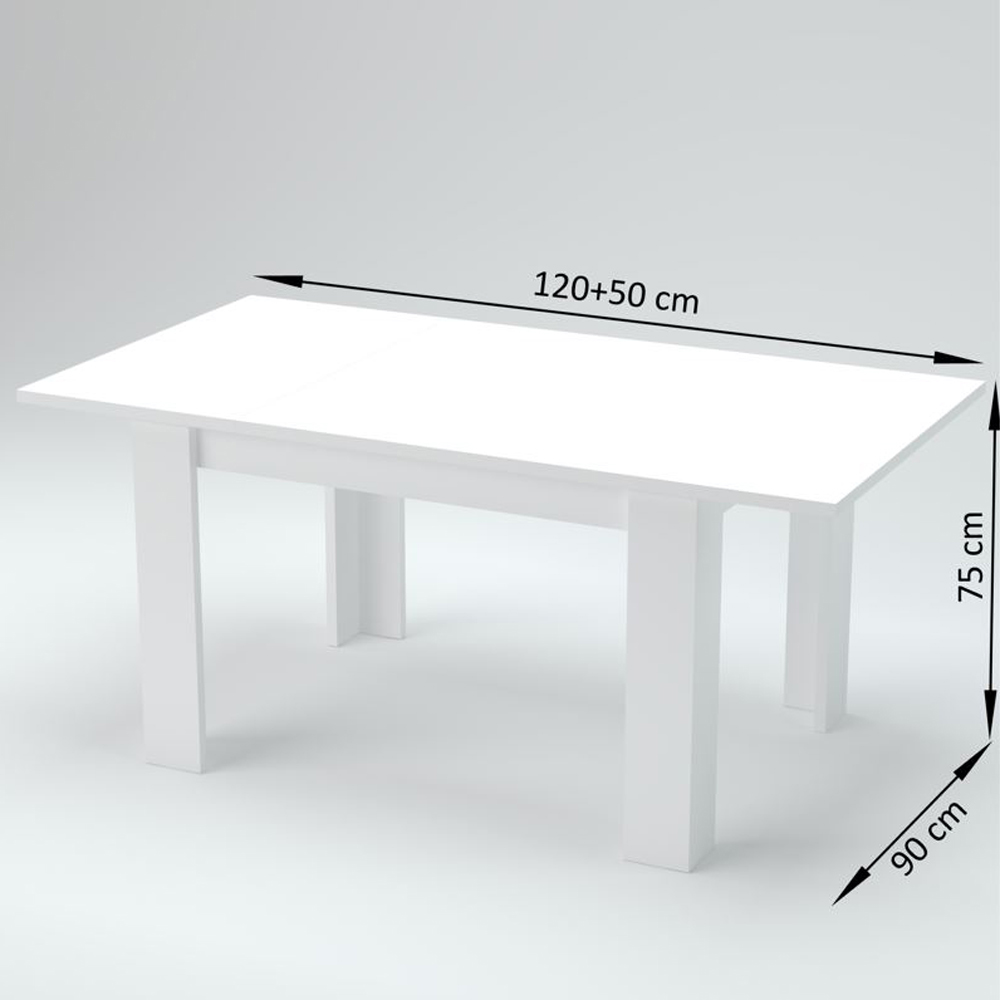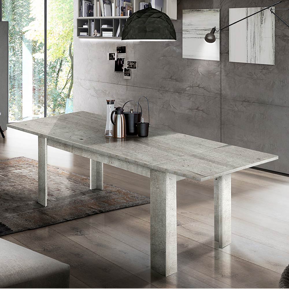 The extendable dining table has a rectangular design that is characterized by clean and minimal lines.