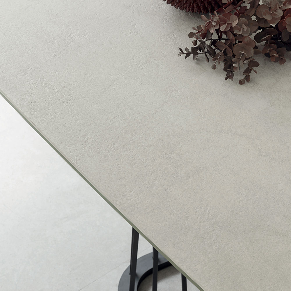 Extendable dining table in ceramic and base with metal ropes made in Italy.