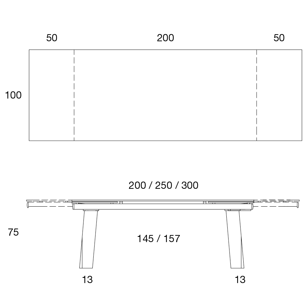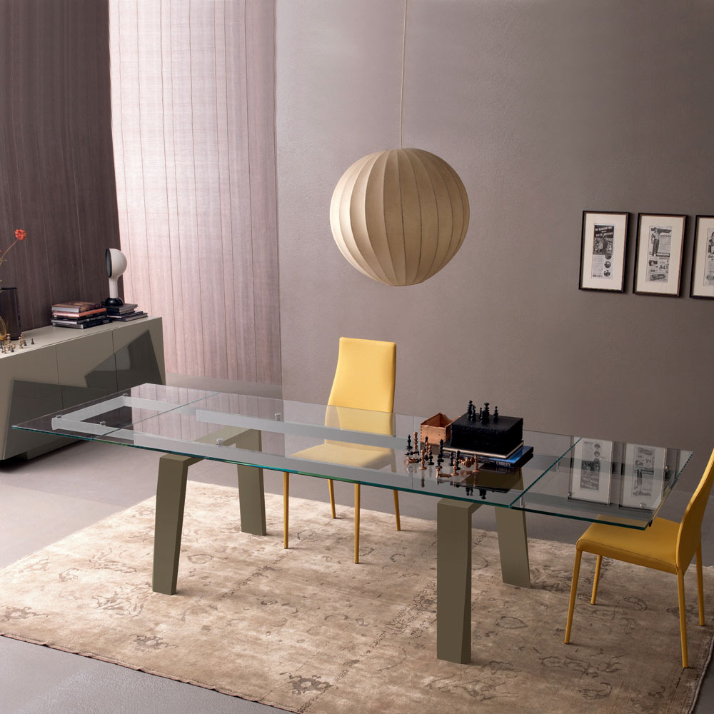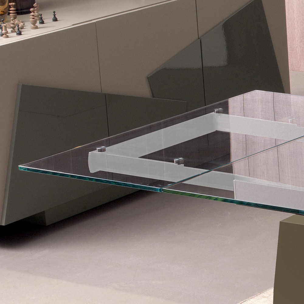 Extendable dining table in transparent glass and legs in lacquered wood, 2 sizes made in Italy.