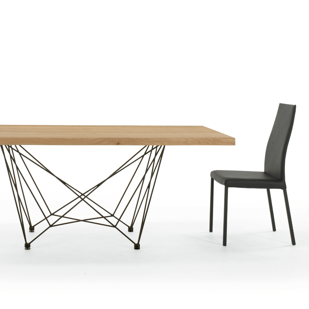 The Ezzellino kitchen table is outlined by curved lines and a refined design that make it the true protagonist of all your environments. Handcrafted in Italy with high quality materials and 100% made in Italy. Composed of a veneered wood top with irregular debarked edge (thickness 50mm) and a black lacquered steel base.