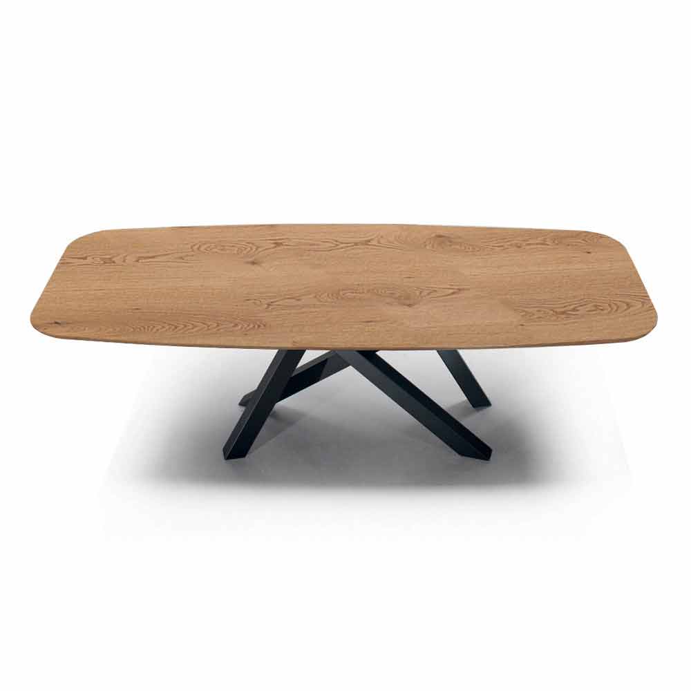 Luxury dining table with barrel top in HPL laminate Made in Italy.