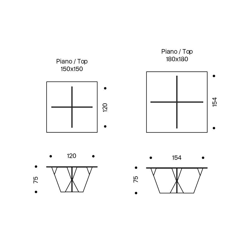 L 150 x P 150 x H 75 cm;