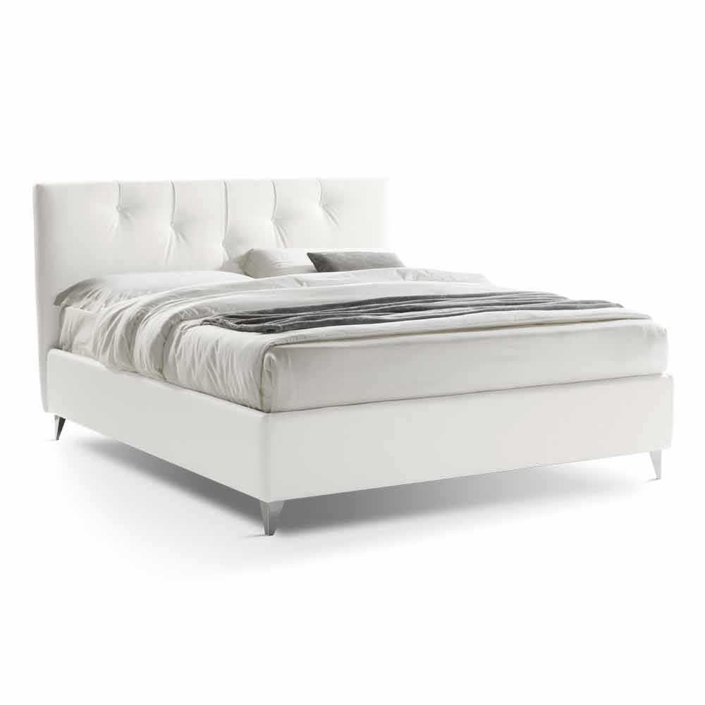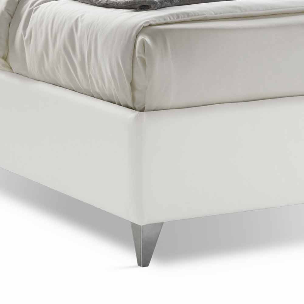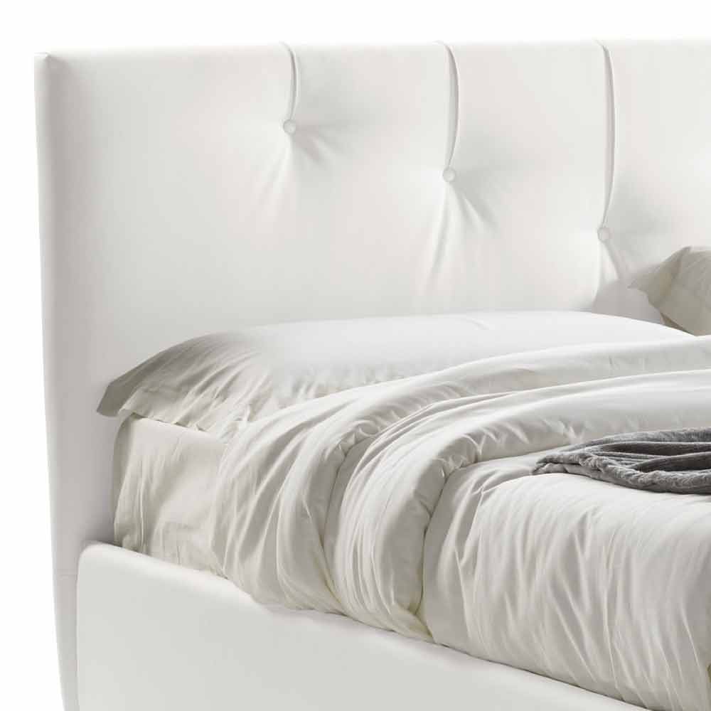 Double bed with modern design container in white eco-leather, handcrafted in Italy.
