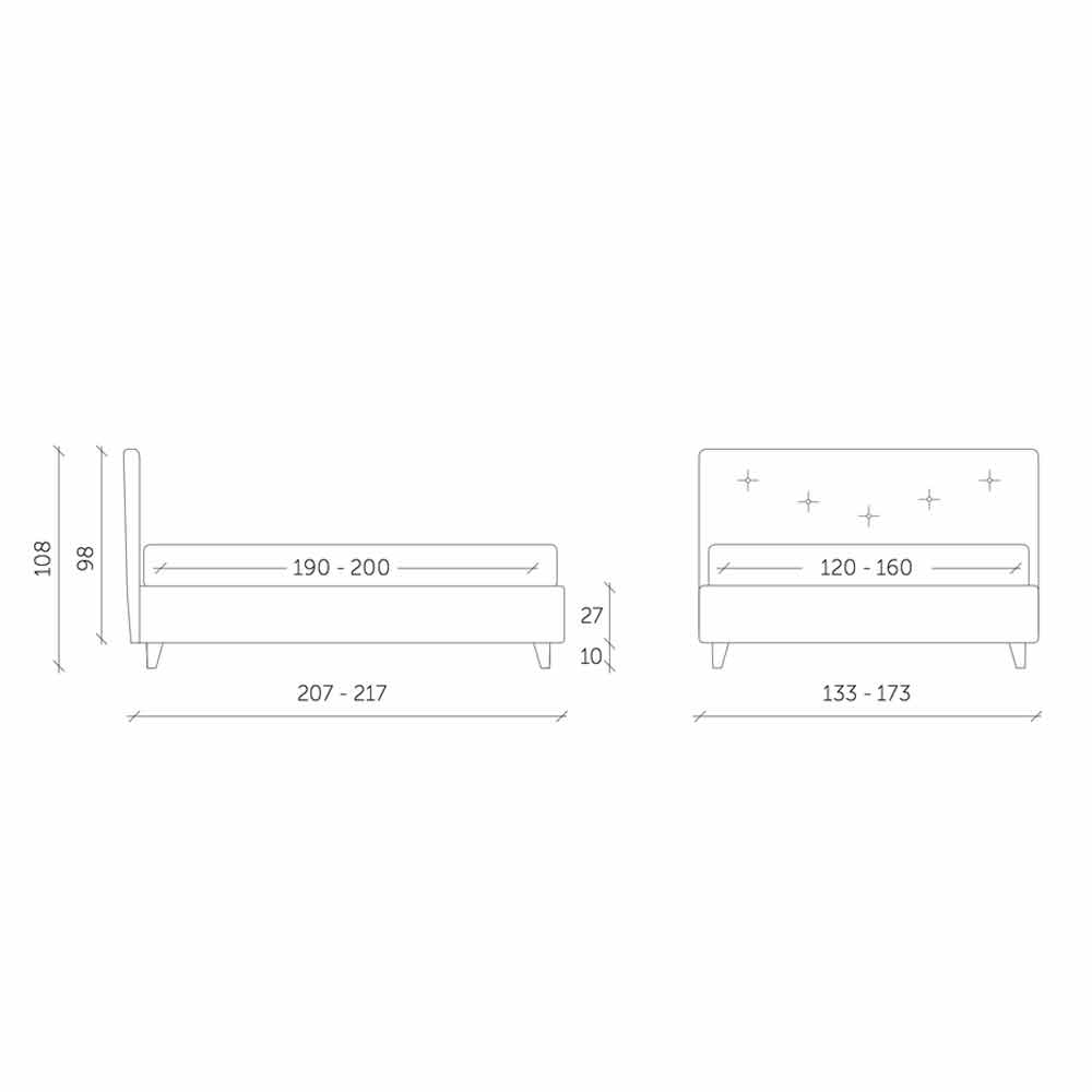 Being a handmade product, it is easily customizable both as regards the measures and the upholstery, in fact, a vast sample of fabrics, leathers, eco-leather etc. is available to choose from.
