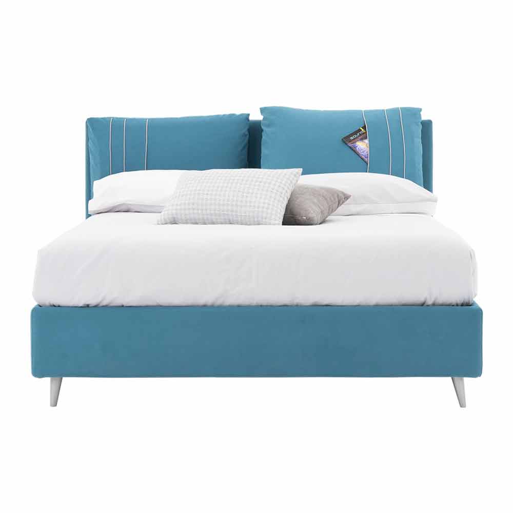 This bed has a structure entirely covered in fabric and 4 feet made of wood with an aluminum finish and is characterized by the particular headboard available in 3 variants that makes the product unique in its kind, giving an elegant and innovative design. The bed frame as well as the headboard are